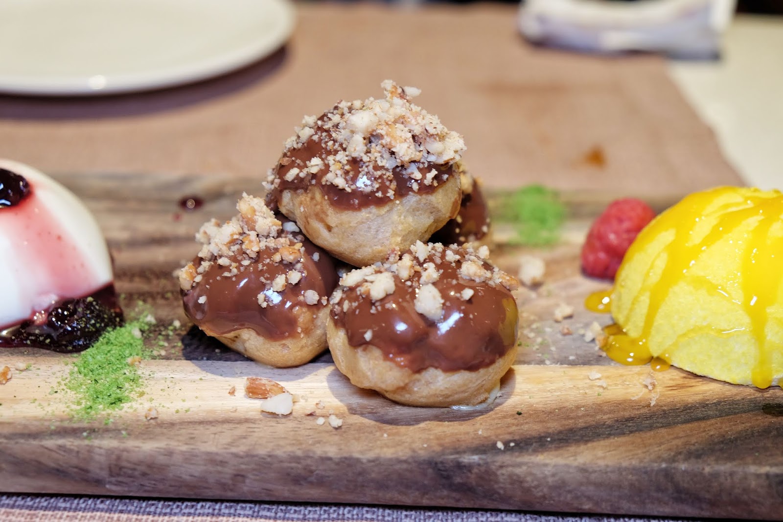 Tiramisu是預期中的濕潤鬆軟,無可挑剔,一下子便攫取了我的心;Profiteroles中間注入了吉士醬,感覺有點淡淡的橙香;至於芒果奶凍,質地幼滑,芳香馥郁,而壓軸的 Parfait,更是不得了,軟綿幼滑,芳香甜美,一流。