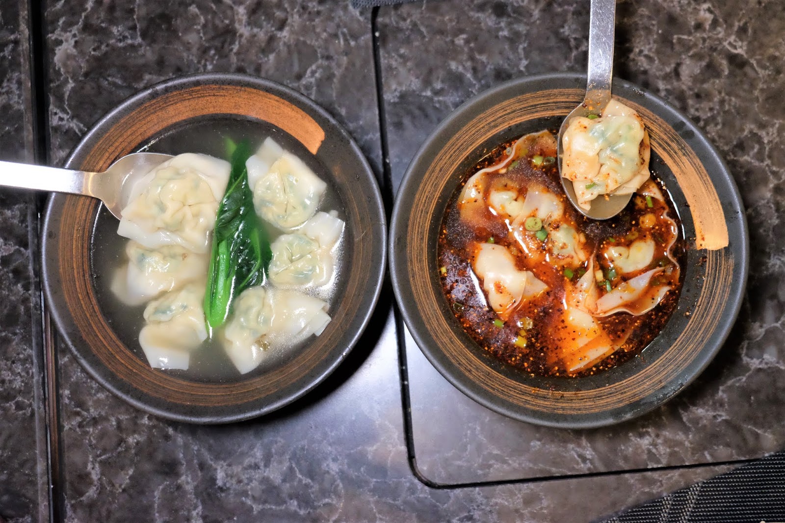 兩款抄手的餡料其實是一樣,分野在於醬汁的運用,想清淡的當然是雞湯,但加入酸辣汁的抄手,令人越食越想食。