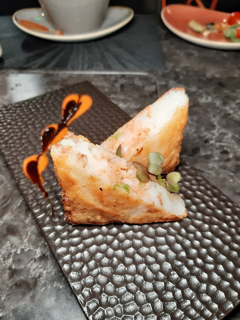 一見百花兩個字,就知道會釀入蝦膠,蘿蔔糕兩邊煎得微焦,所以食落帶脆口,卻又不失蘿蔔糕的味道,整件菜色都upgrade了,好有心思的改動。