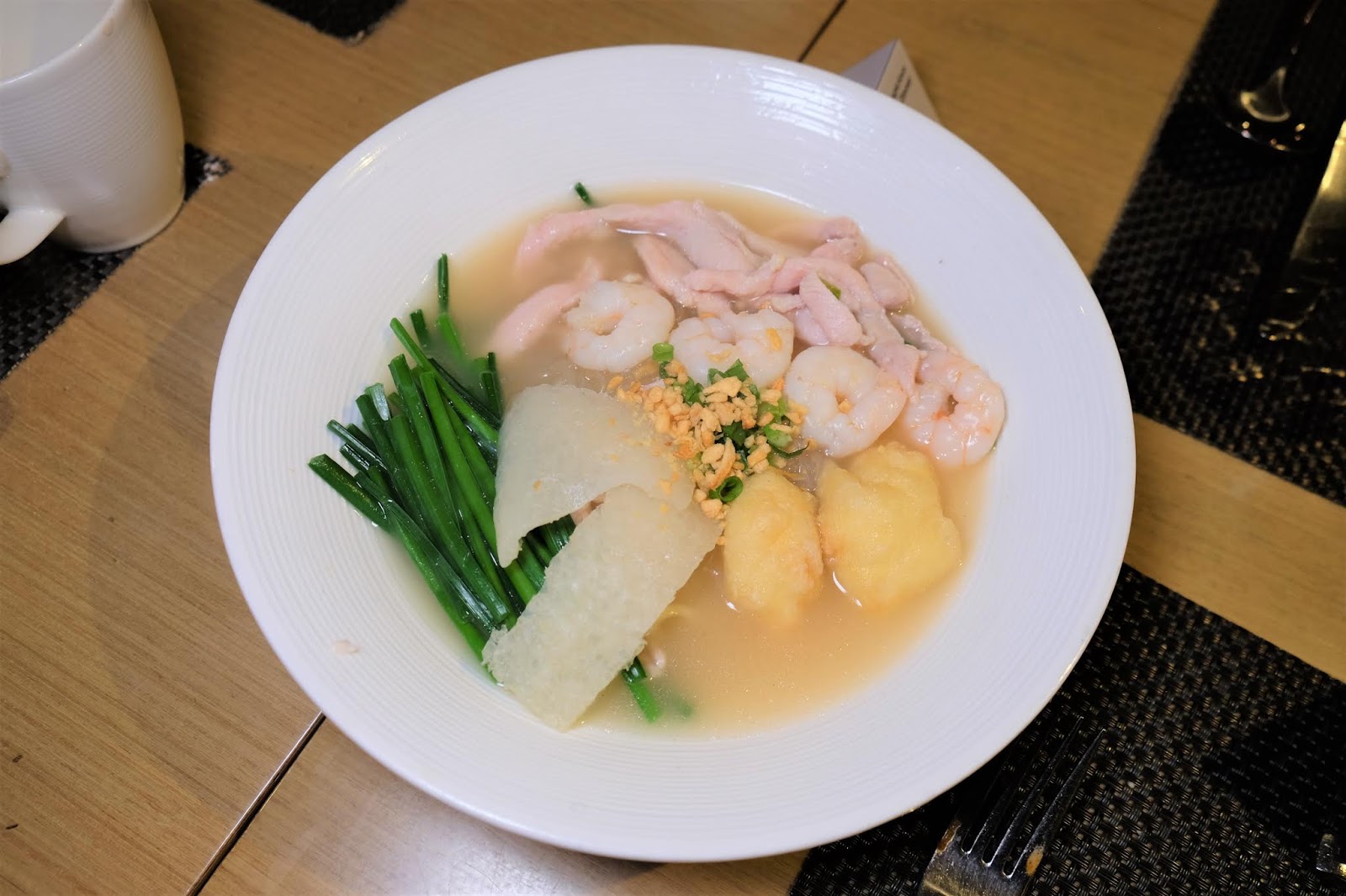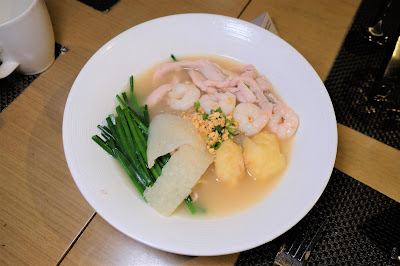 又係個人必食位,今次無喇沙,只有豬骨湯及菜湯,麵底有粉絲、油麵及米粉,配料有秀珍菇、金菇、豬皮、豆卜、芽菜、魚片、魚蛋、龍蝦丸、雞肉、蝦肉、韭菜、娃娃菜及小棠菜。