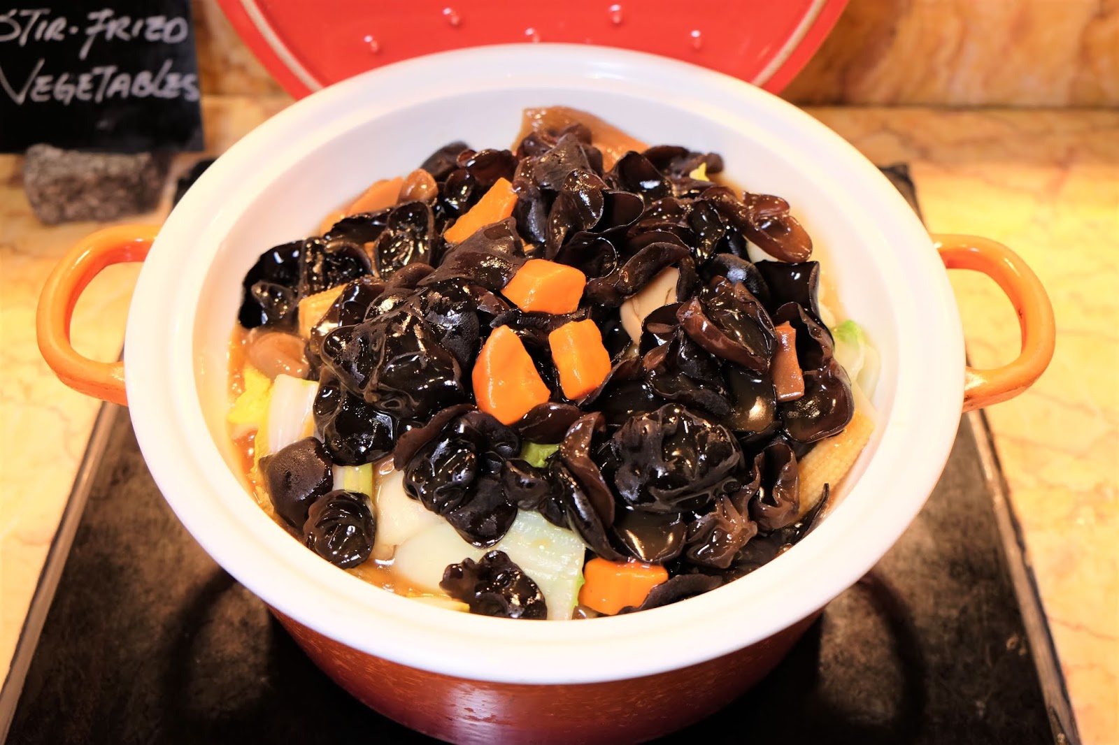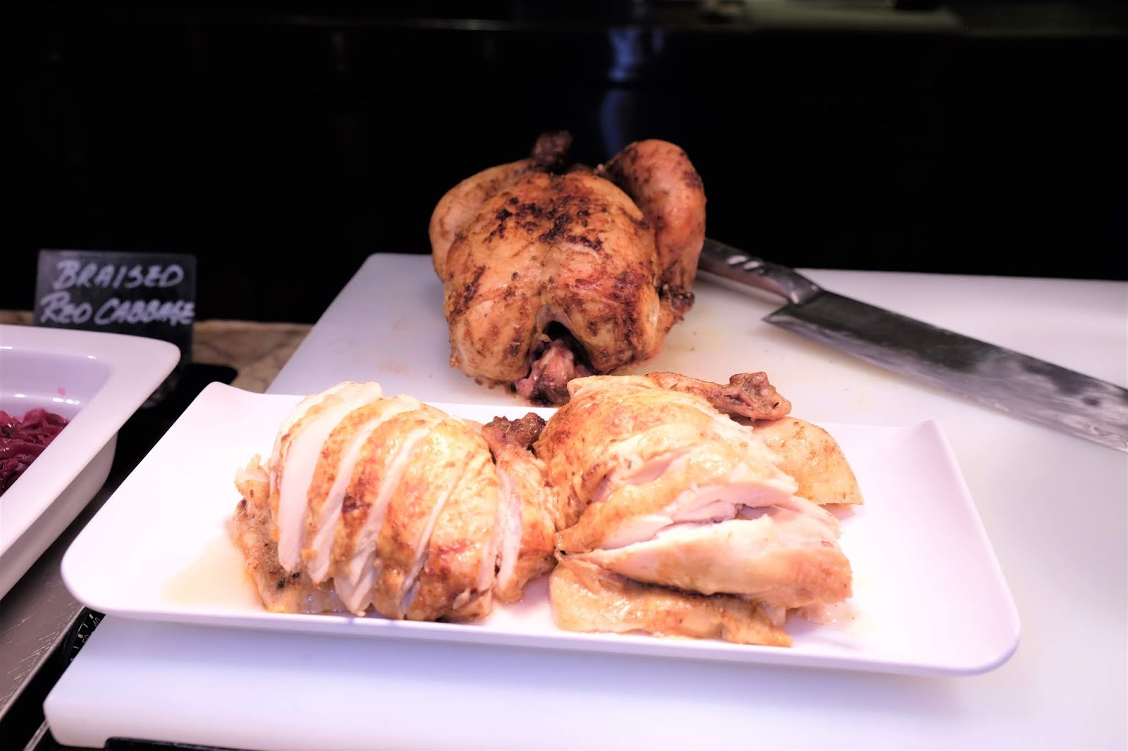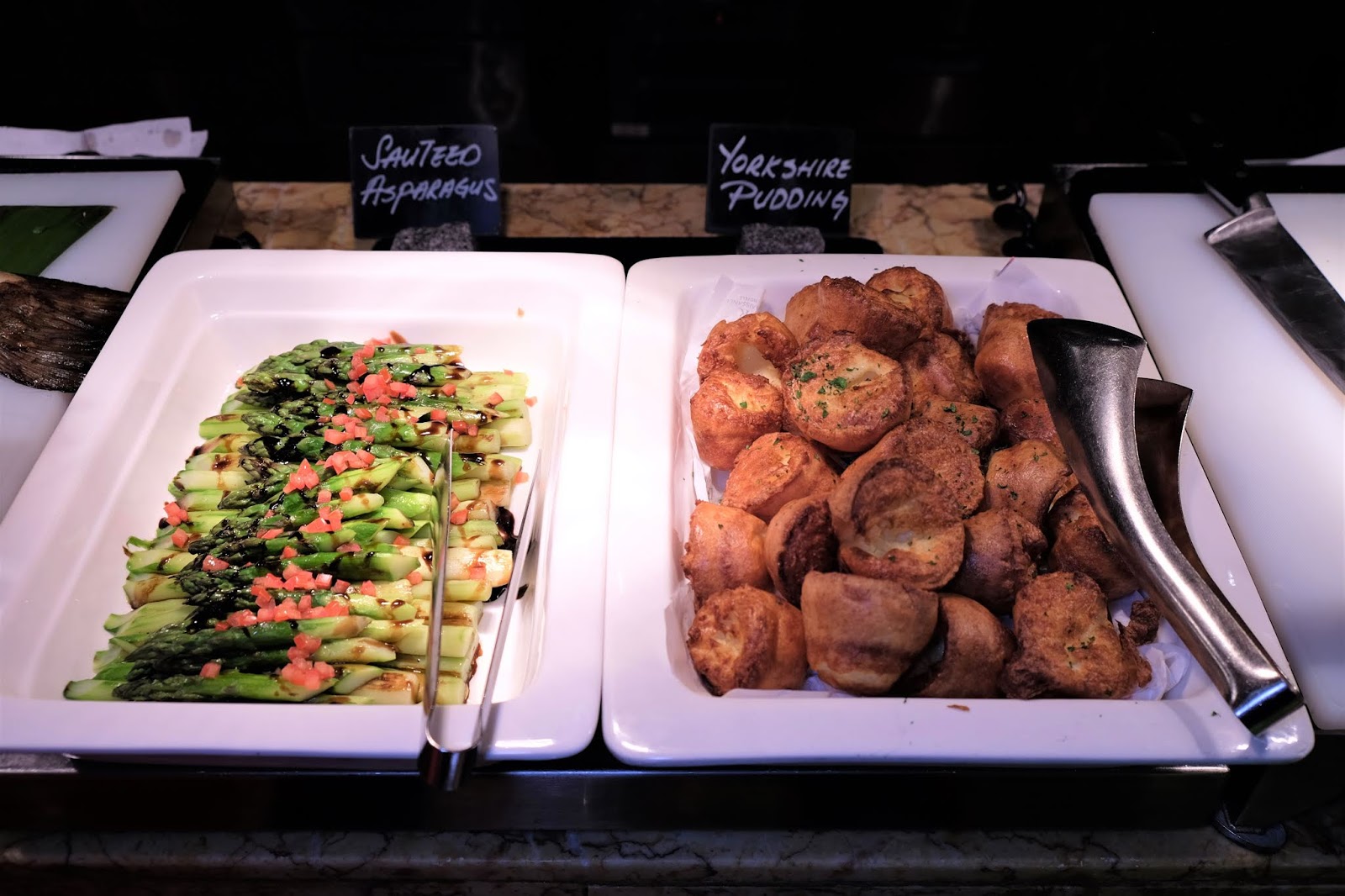 有braised pork trotters with sweet soy sauce、爆炒牛柳粒、酥炸魚柳、三文魚炒飯、XO醬炒蘿蔔糕及Yorkshire Pudding。