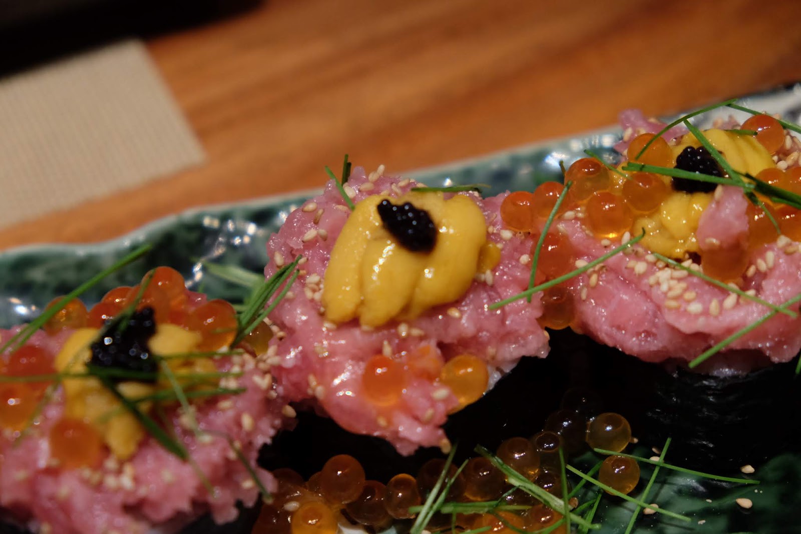 吞拿魚蓉、黑魚籽、海膽及魚籽的組合,簡直是將鮮味的海產都擺上了,沒有不好吃的道理。