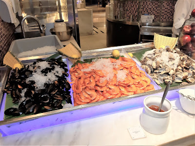 講真,未必食得晒咁多款,因為黃金蝦球、東江鹽水雞及、烤盤焗盲曹魚配粟米蕃茄青檸牛油汁、魚湯鮮腐竹浸時蔬、蒜香蜆肉意大利粉配白酒汁、豉汁蒸鳳爪、豆豉蒸青口、燒賣、蟲草花蒸魚柳、上海粗炒、魚肉咖哩及印度雜菜咖哩,睇落真係好吸引。