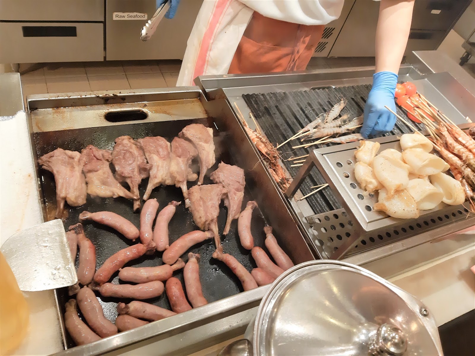 墨魚、羊架、海蝦、雞肉腸及雞翼