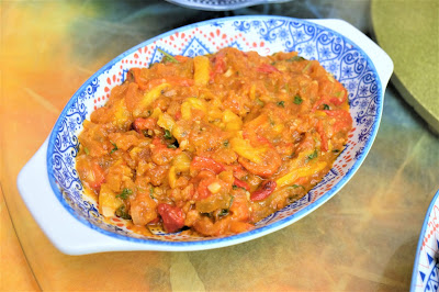 個人覺得前菜中最喜的一道菜,(蕃茄加燈籠椒)將紅黃椒燒至焦香,褪皮只留肉,混和了蕃茄肉,入口軟稔,而且帶彩椒的辛香,好味。