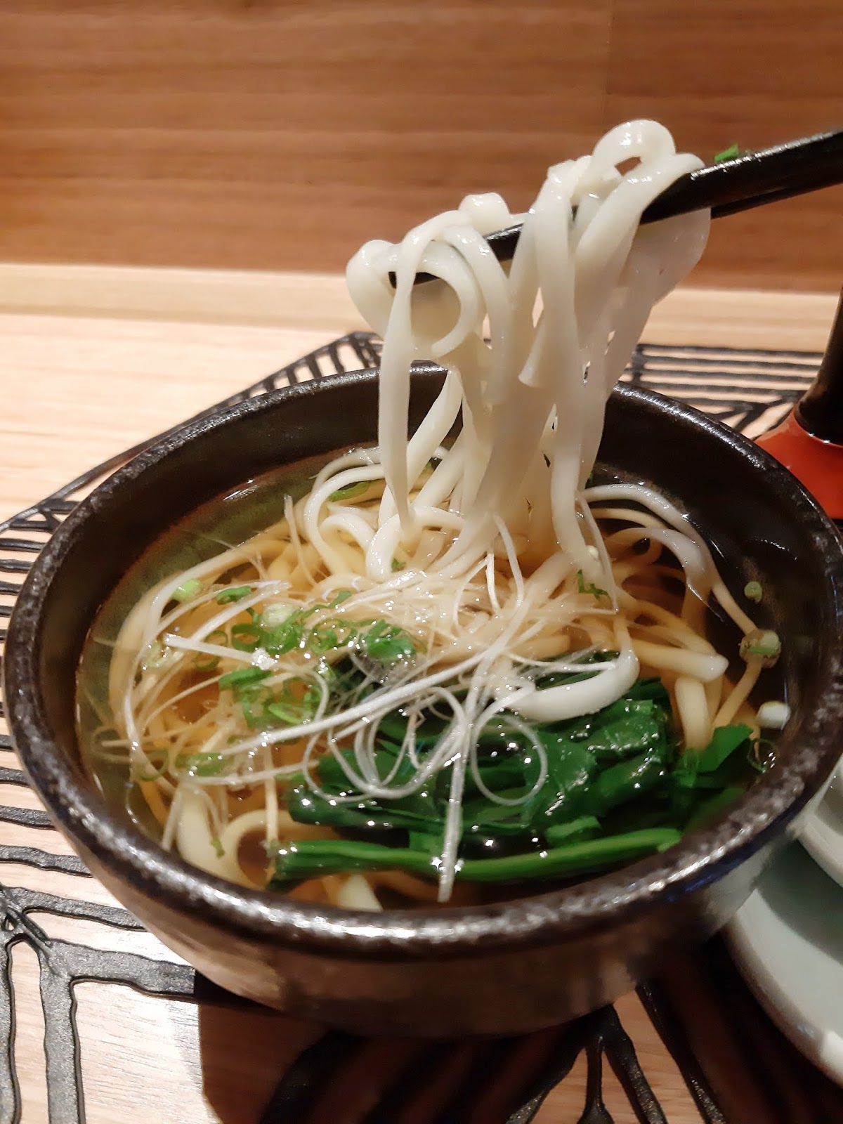 湯底用上木魚花及冬菇乾,散發陣陣幽香,稻庭烏冬質地滑溜,吃得令人心滿意足。