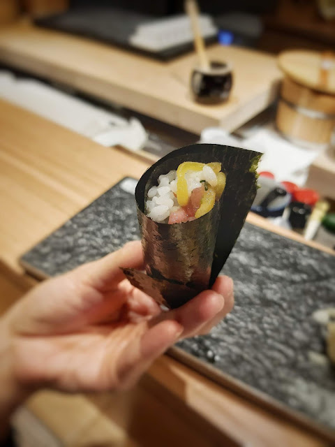 再來是壽司,深海池魚肉質爽身,連同紅心蘿蔔美人蔥,多添了一份芳香。