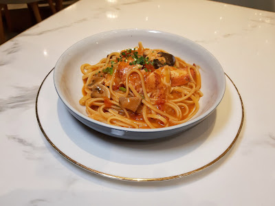 原隻龍蝦起肉,賣相一流,用蝦殼熬煮的龍蝦汁,濃稠到一個點,尤其是意大利粉掛上了醬汁,美味到一個點,絕對推薦。