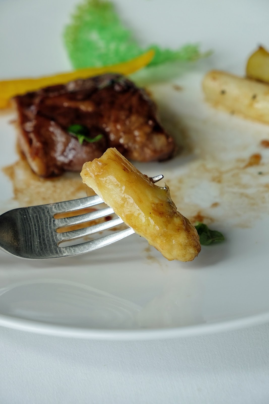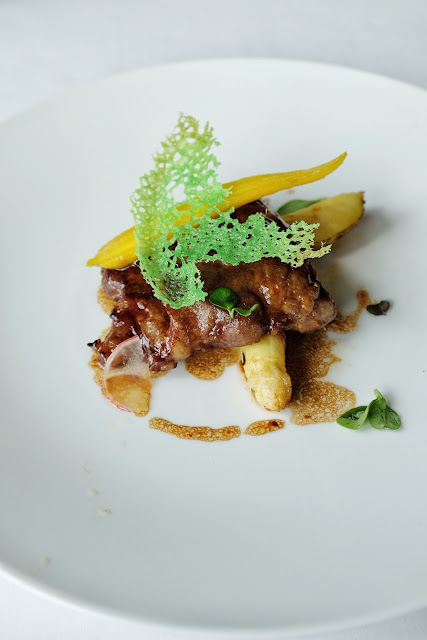 伊比利亞黑毛豬肩肉伴黑醋、白露筍及牛油鼠尾草醬