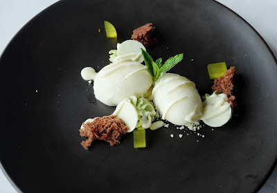 柚子雪葩、開心果慕絲、Ricotta芝士片、朱古力海綿蛋糕