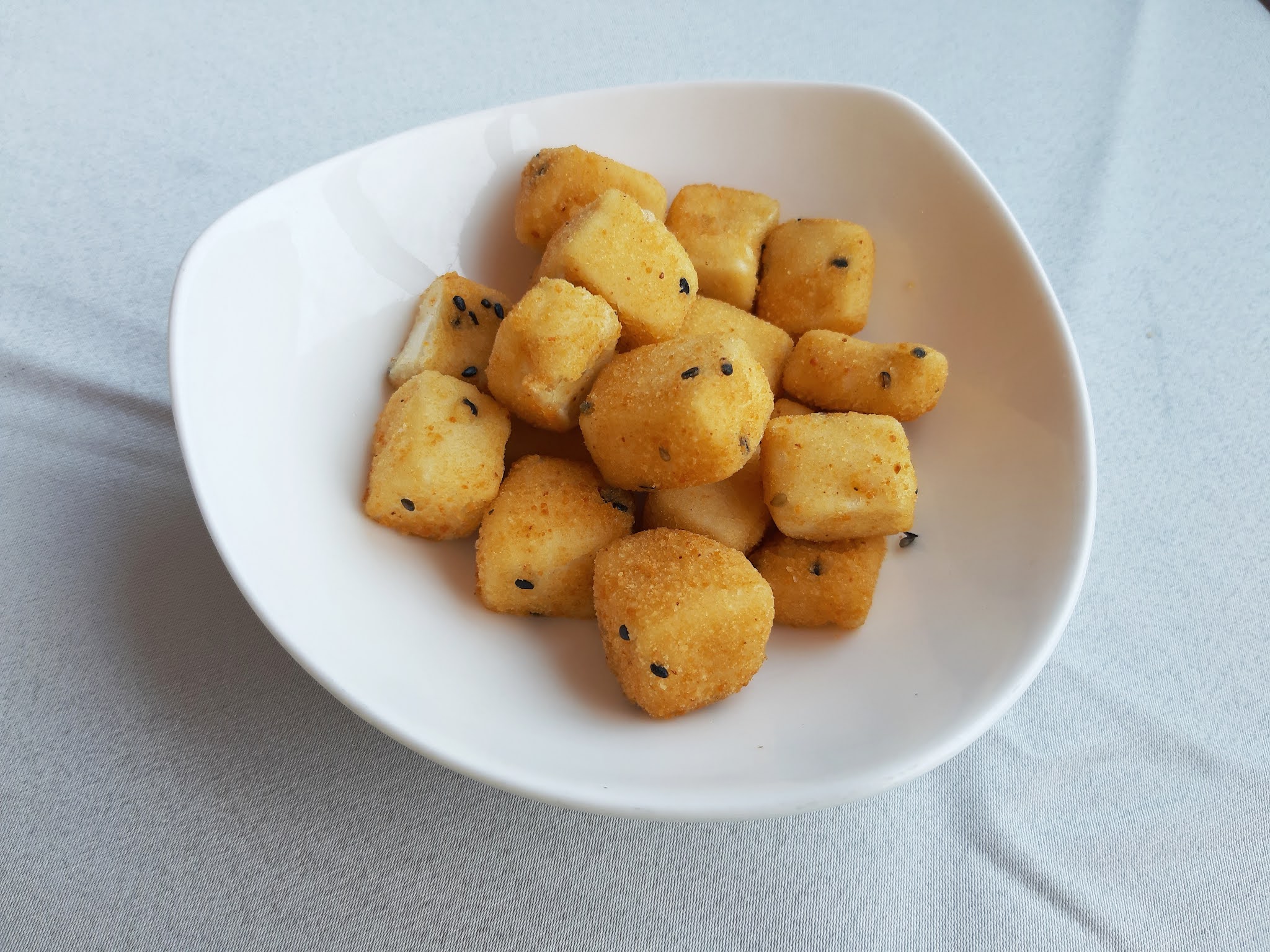 茄子切粒後蘸上炸漿,都幾薄身,而且油份算輕盈。