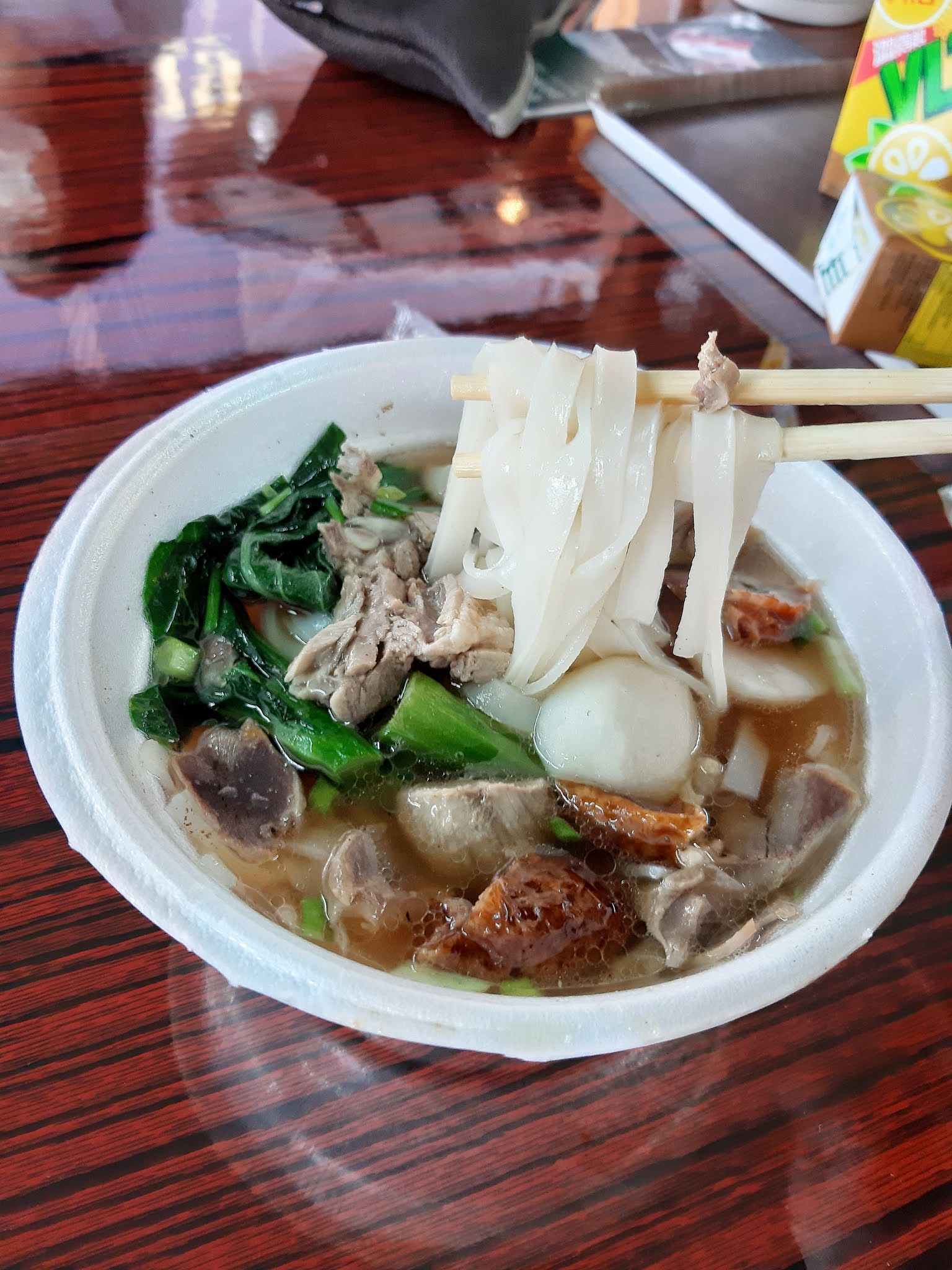 只見「流叔」把船準確地泊在漁船旁邊,煮好河粉後,依次放上鴨肉、魚蛋、豬耳及雞腎,再澆上熱燙的鴨湯。