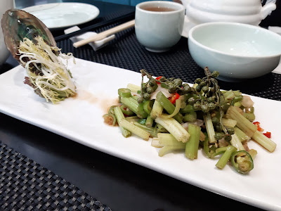 前菜共有三款,「香油萵筍絲」幾清新爽朗;「椒汁鮑魚」西芹好脆嫩,但鮑魚切成超薄片,而且份量稀少;「麻辣豬耳絲」陣陣辛香又爽脆。
