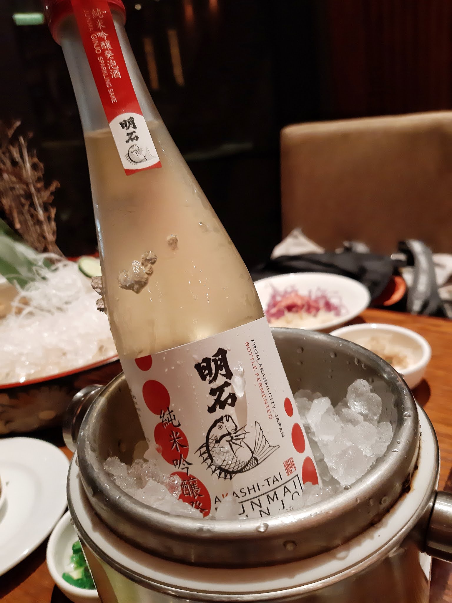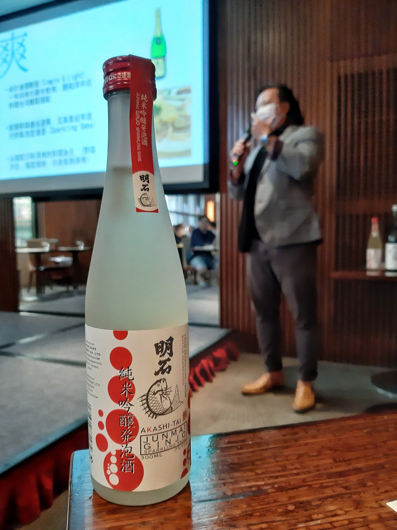 今次 Sake Class 主要介紹五款「明石鯛」系列清酒,該品牌一向係海外薄有名氣,就由一枝「純米吟釀發泡酒」打頭陣。