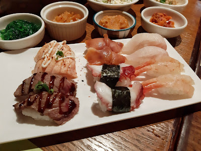 晚餐時段更加不得了,前後共超過60款日式食品,由沙律、刺身、涼菜、壽司、熱湯、小吃、天婦羅、串燒、煮物、飯麵及是日主打的西班牙黑豚肉菜色,每位連加一都只是$468。