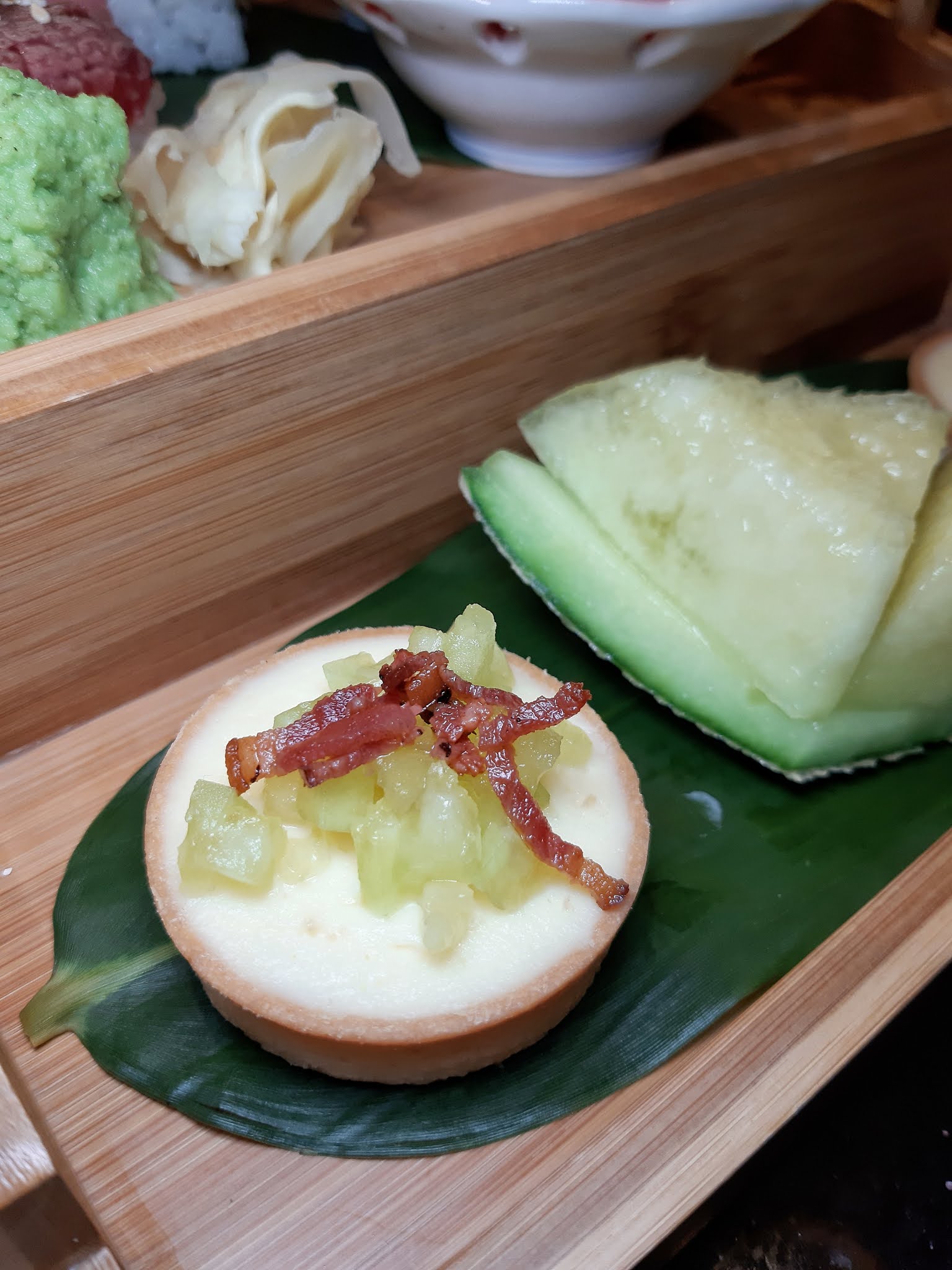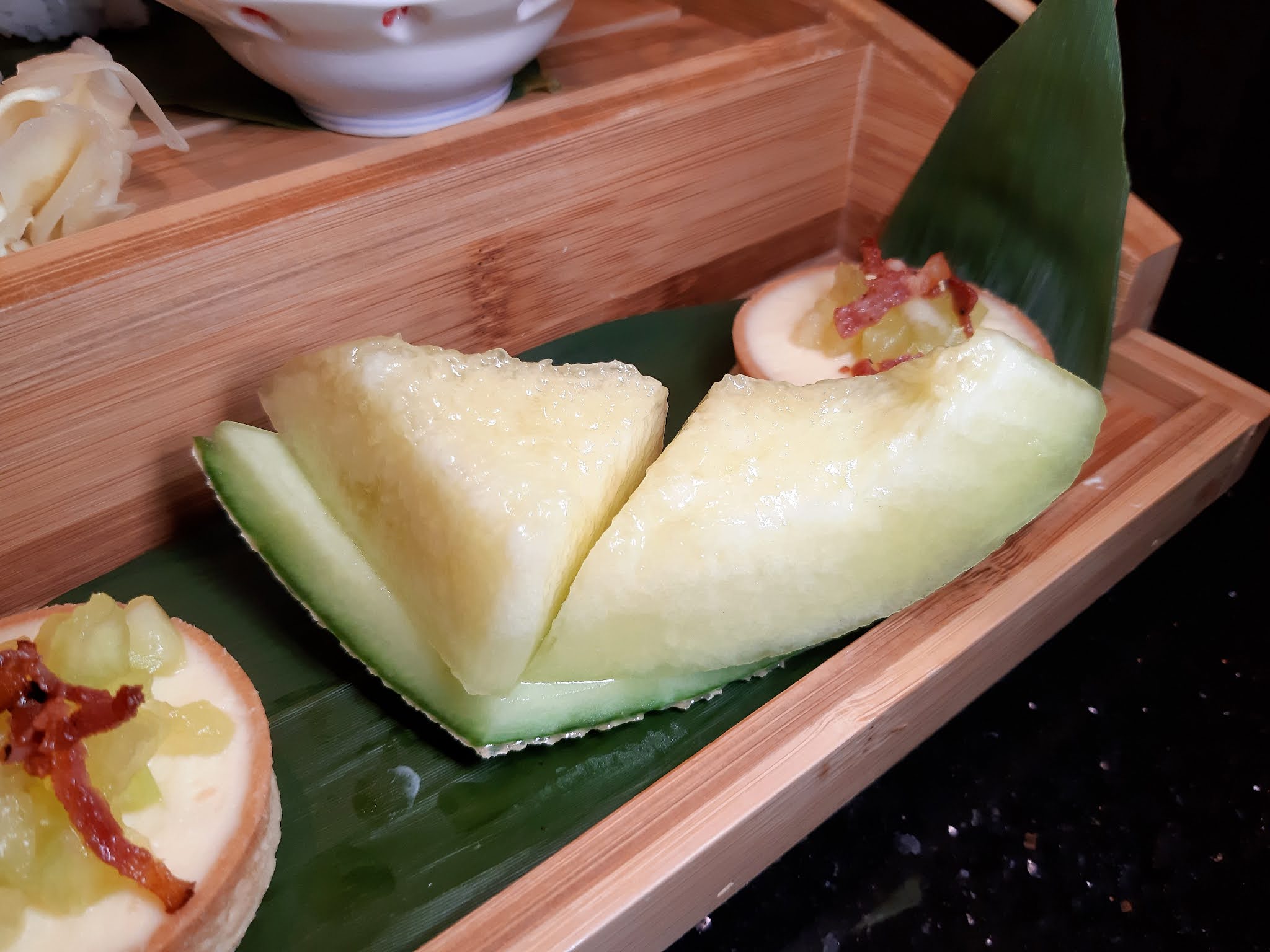 近日見沙田帝都酒店櫻田日式餐廳逢星期六日推出「靜岡蜜瓜日式下午茶」,竟然以當造甜美的靜岡蜜瓜作主打,就連鹹點都是壽司,有點破格的感覺。