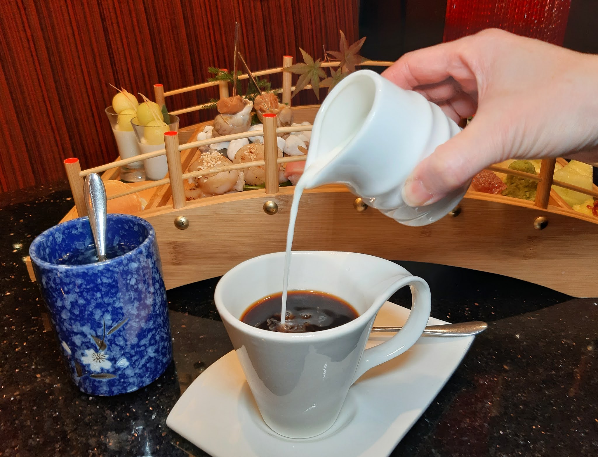 下午茶由3點15分開始提供,包含兩杯飲品,太太簡單的來杯熱柚子蜜,自己之前一天先 staycation,精神有些少晃悠,就來了杯滴漏咖啡提神,老實講,咖啡幾香濃。