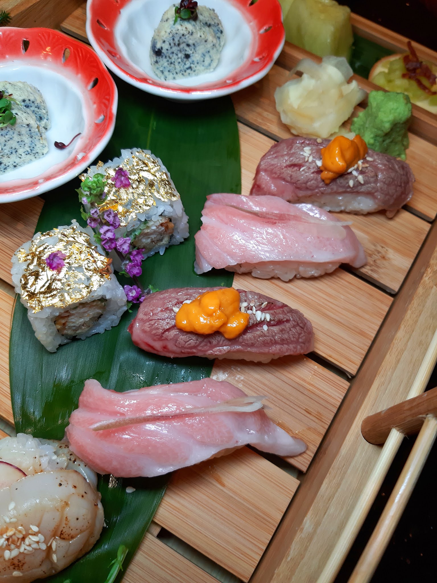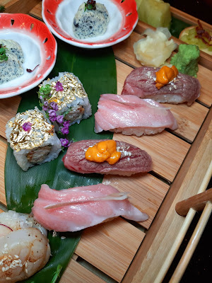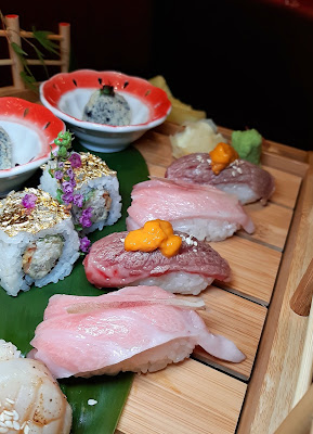 壽司有三款,分別是火炙和牛海膽壽司(2件)、火炙帆立貝漢堡壽司(2件)及火炙吞拿魚腩壽司(2件),各自有不同的風味。