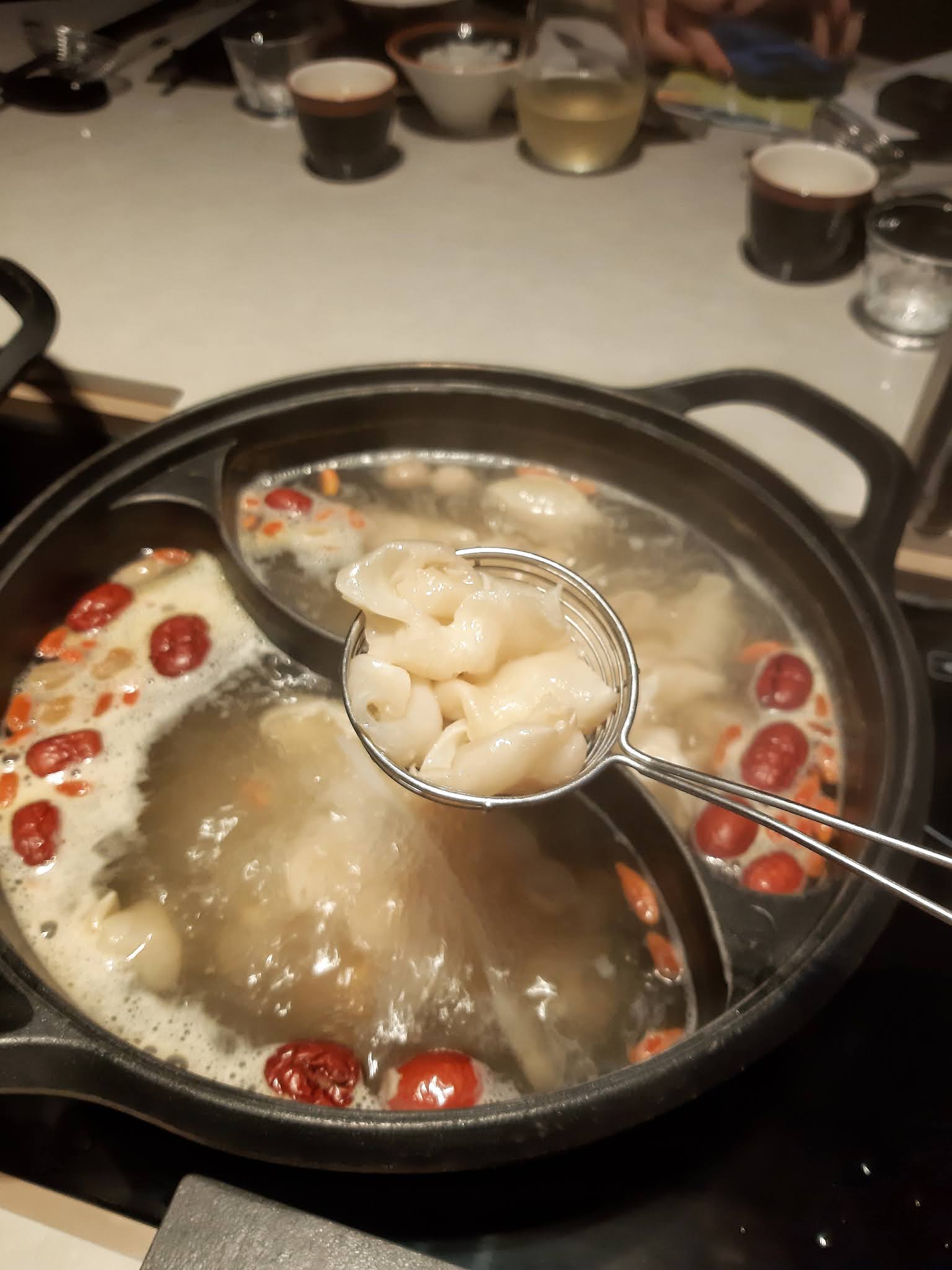舀一下,好多花膠筒同圓肉,未食火鍋先呷口湯,真係好鮮甜。