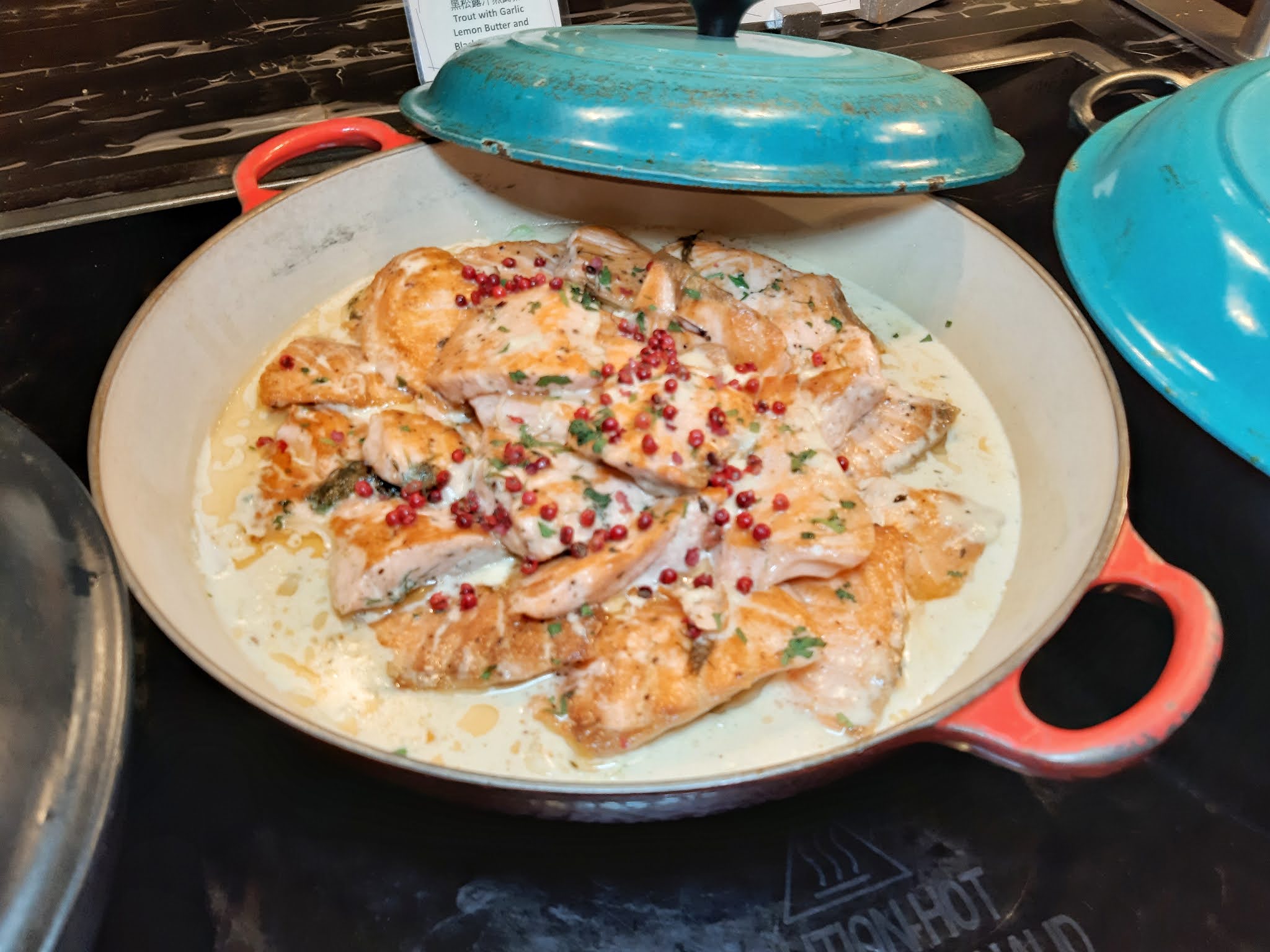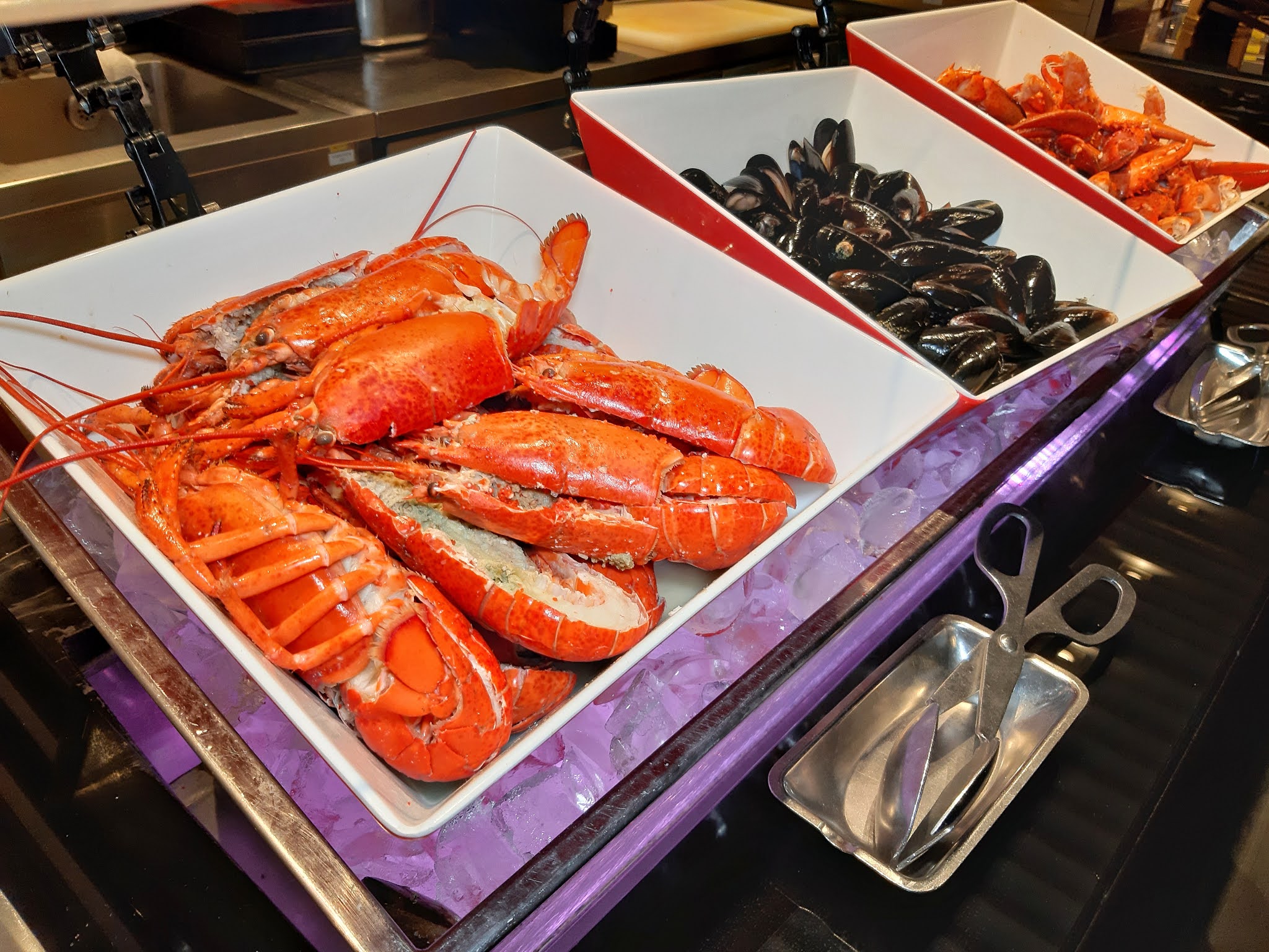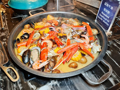 加埋蒜香牛油焗海鮮、乳酪海鮮咖哩、黑松露汁煎鱒魚、日式照燒雞、約瑟布甸、燒豬肋骨、紅酒燴牛肉、side dish既車厘茄、炒雜菌及香草薯仔,都幾無可能食得晒。