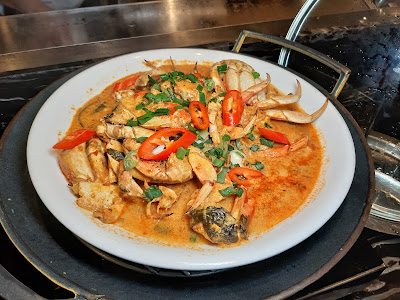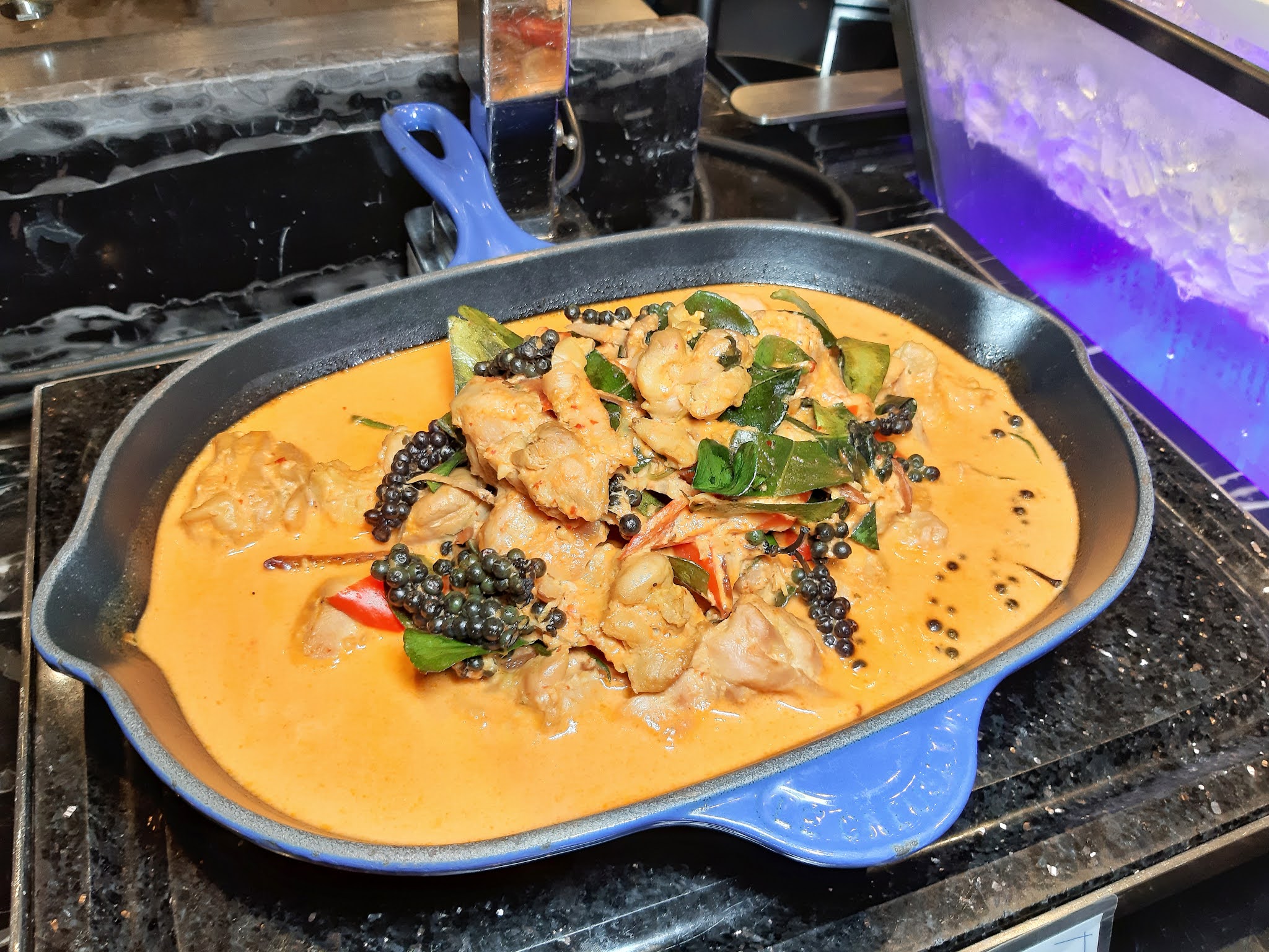 而泰式紅咖哩雞、泰式蒸烏頭、泰式黃咖哩炒蟹及冬陰功,味道好正宗,因為大廚係泰籍師傅嘛!