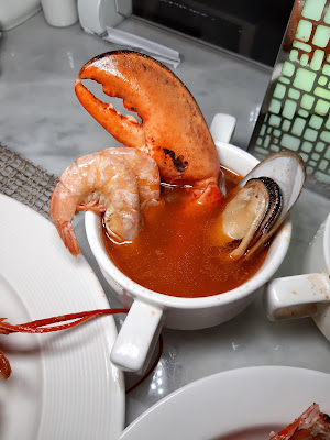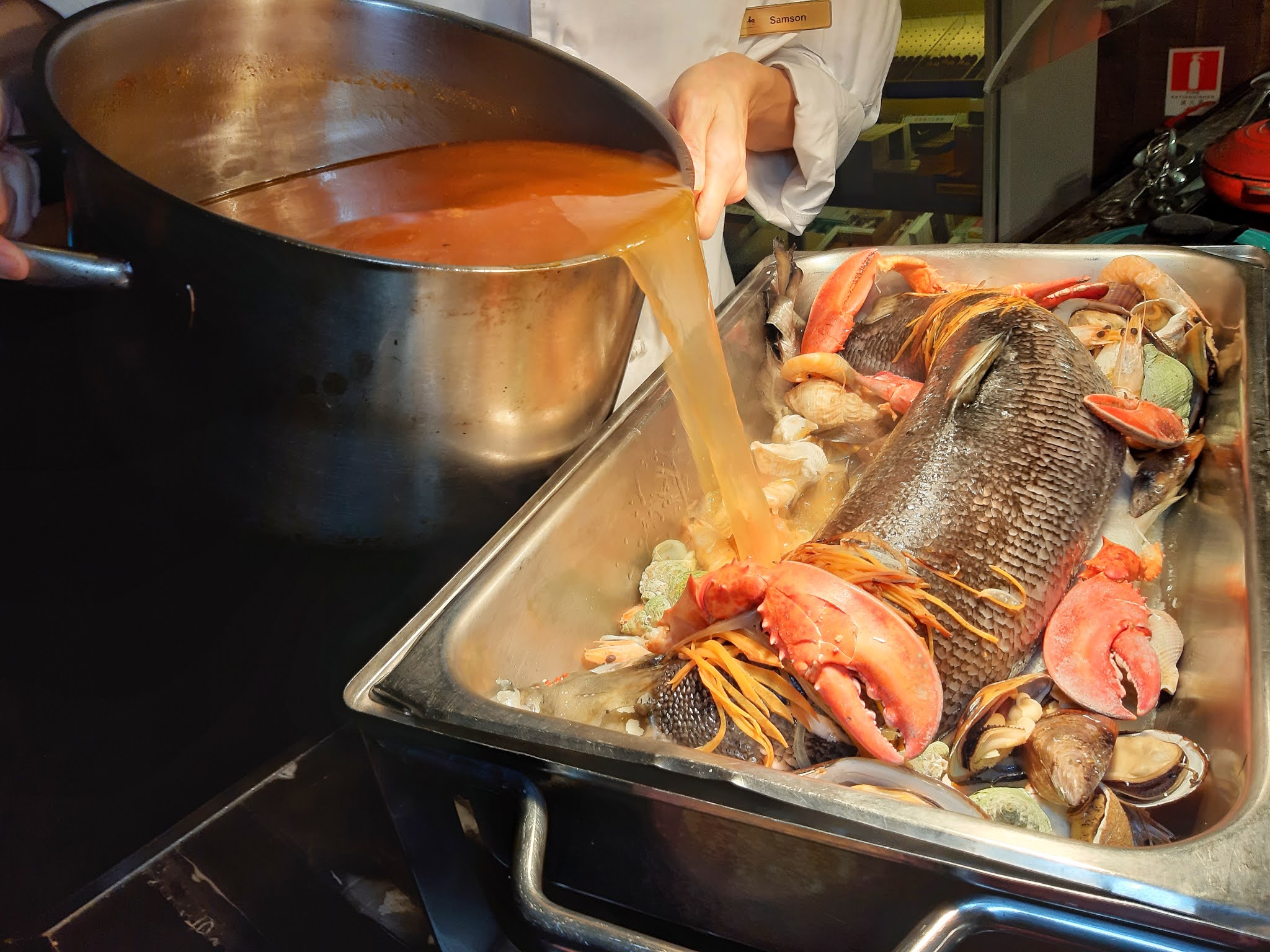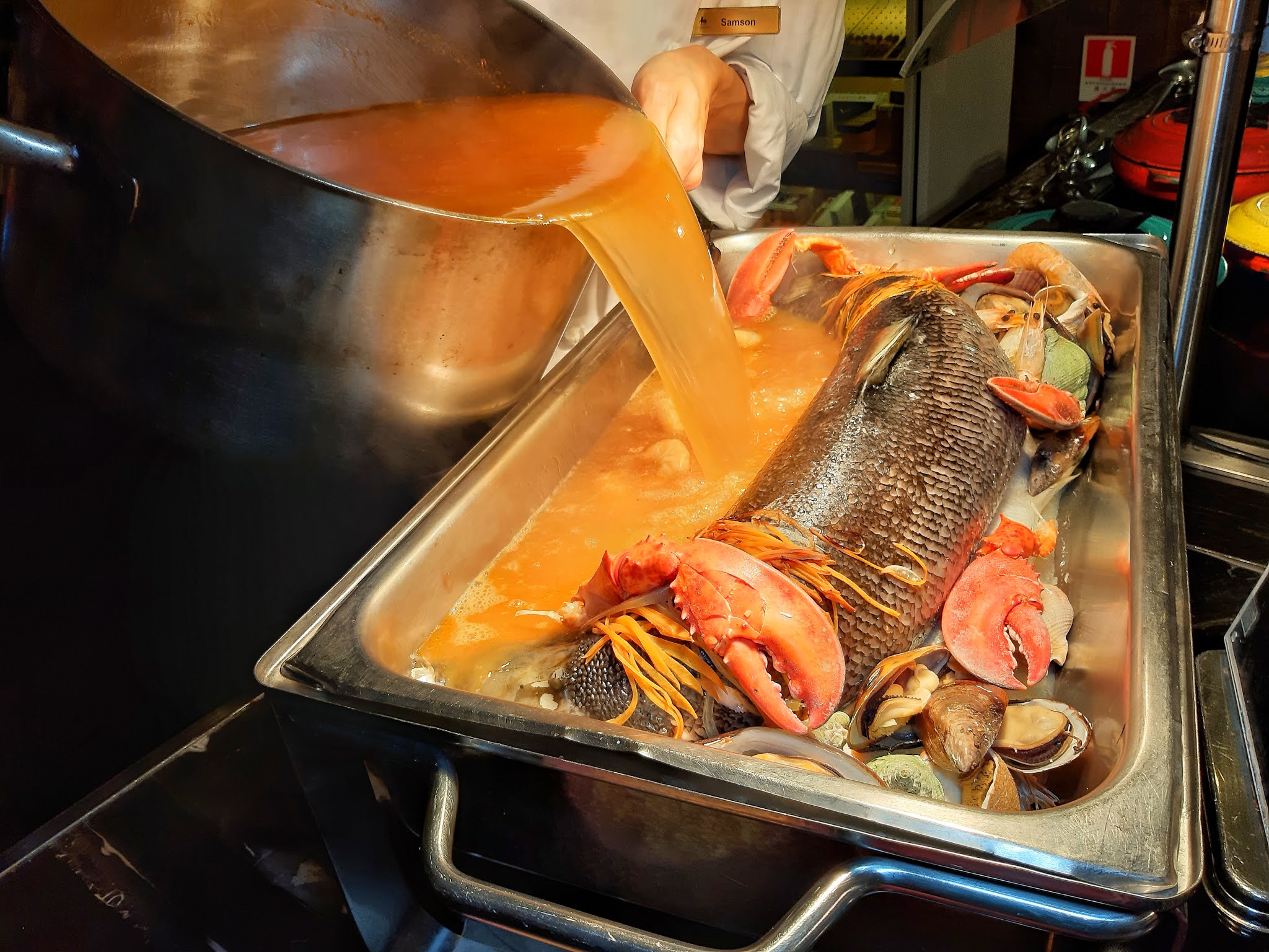 Station,第一當然係法式海鮮湯 (Bouillabaisse)足6kg三文魚放湯,真的誇張,湯底仲有龍蝦鉗、青口及海蝦,難怪味道濃郁。