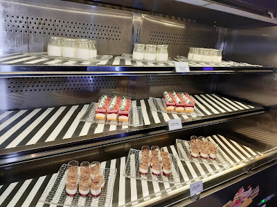 而甜品凍櫃則有北海道3.6牛乳布甸、黑加侖子杏桃慕絲及櫻桃黑森林慕絲。