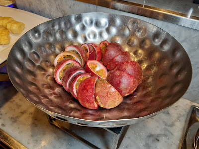 說起來,已經好耐無係自助餐見到即開生蠔,Three on Canton 提供法國Fine De Claire生蠔,仲要係即開貨色保證新鮮衛生,雖然每次只限拎兩隻,但開蠔師傅好快手,無須等好耐。