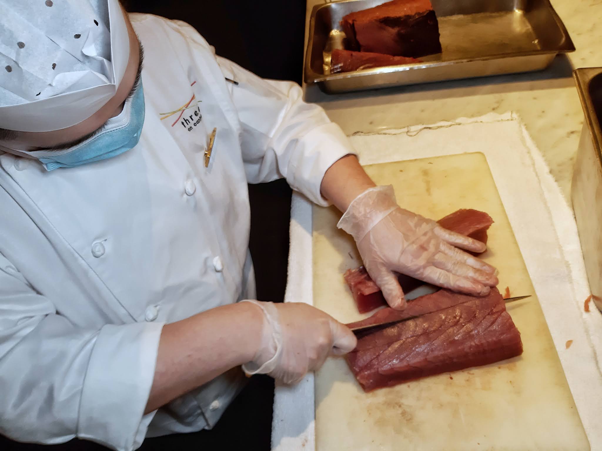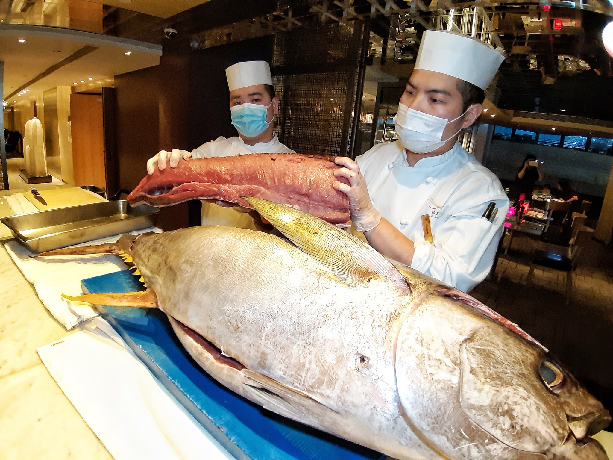 食 Buffet 當然要先找亮點,Three on Canton暫時每星期都會即劏原條菲律賓黃鰭吞拿魚,係疫情下依然咁大手筆,而且係即食,試問又點會唔吸睛吖!