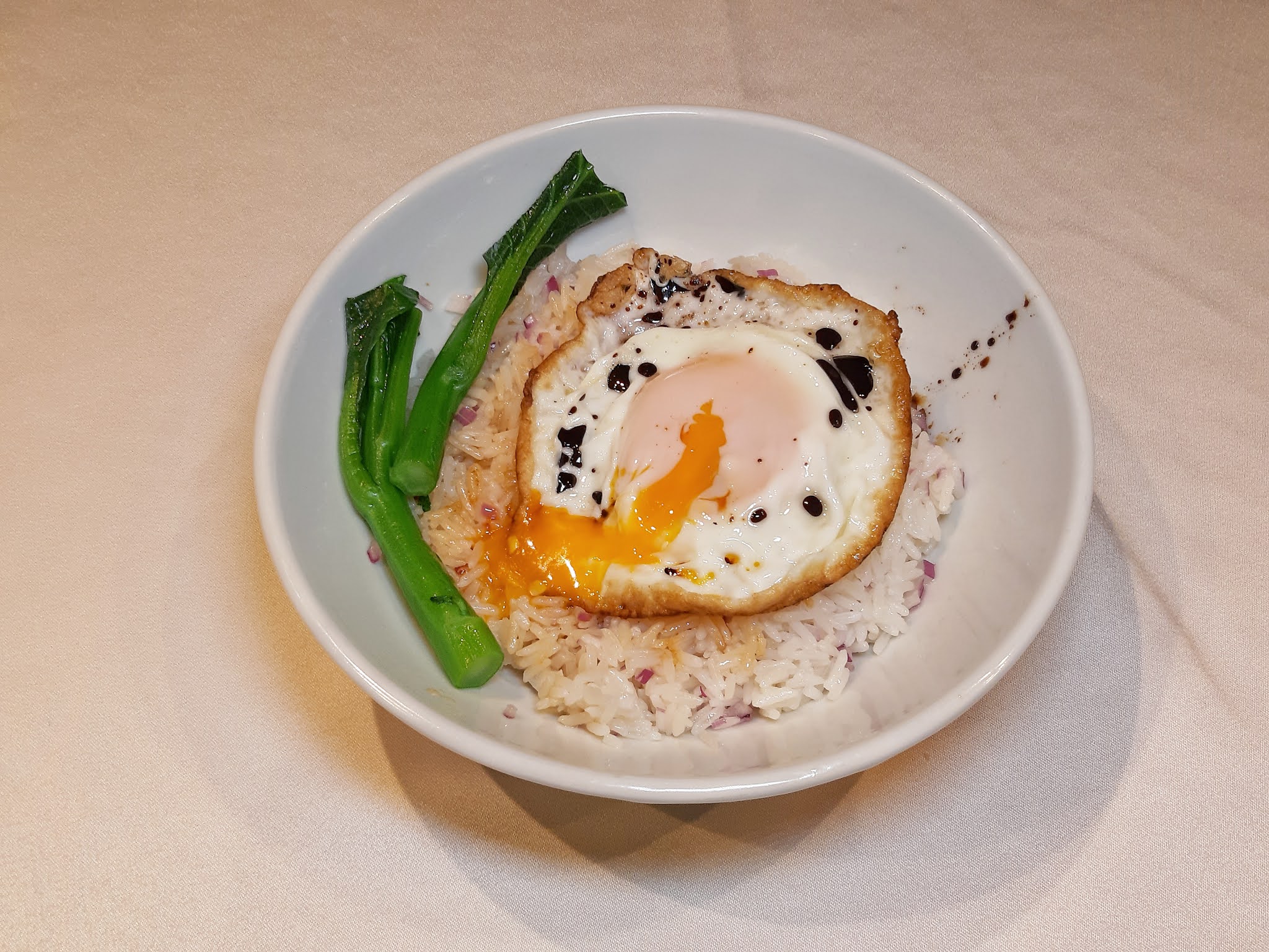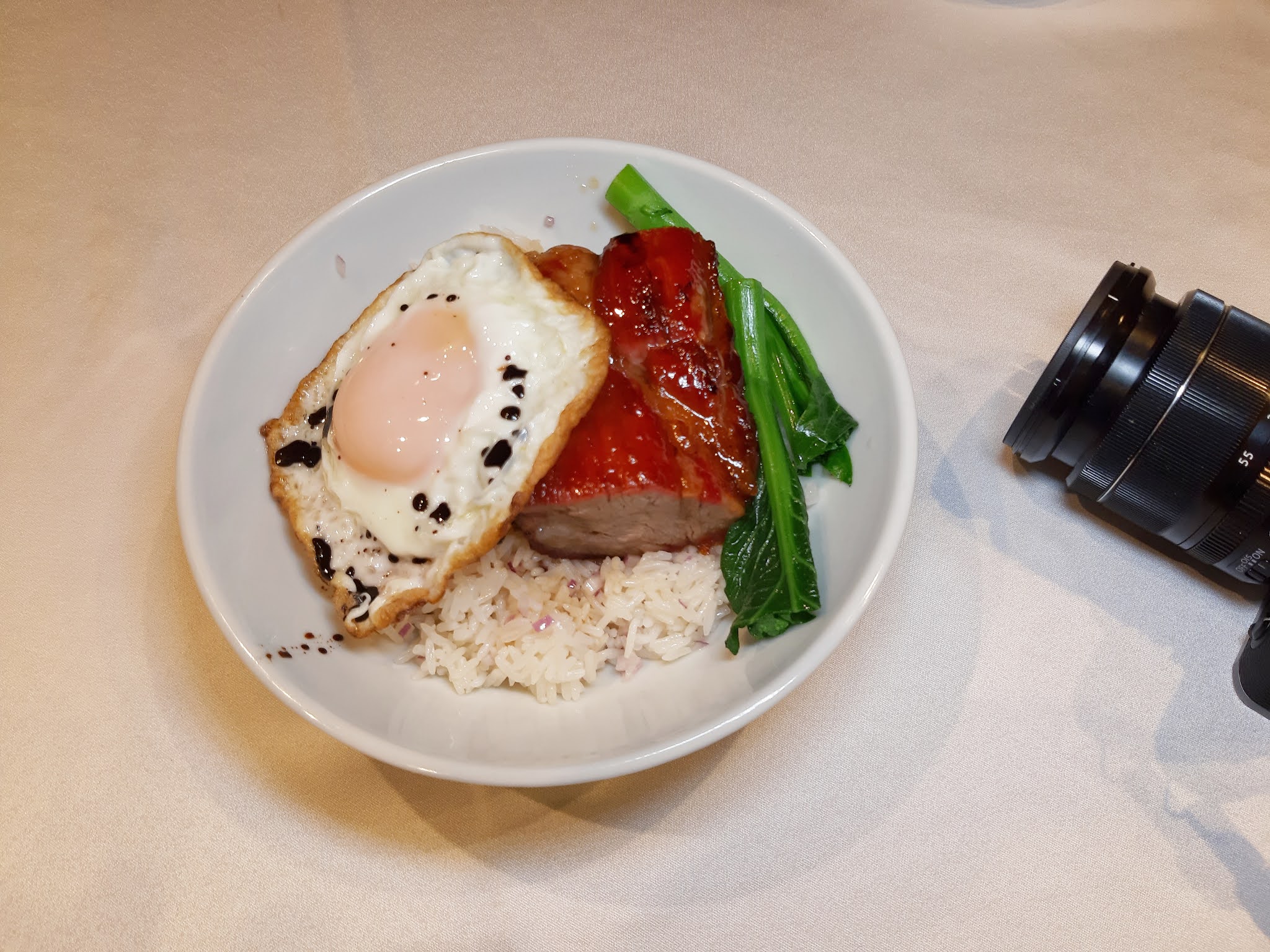 其實由最初版食到家陣,真係看得出的進步,而今次更是精銳盡出叉燒是店方名物,用上脢頭叉燒,肥瘦相間,蜜味重,加上大大舊厚切,名符其實啖啖肉;而雞蛋煎至半熟,食之前用筷子將蛋黃戳穿,讓蛋汁滲落白飯,拌勻燒豬油及紫洋蔥,真是人間美味,至於白飯更是選用泰國青靈芝香米,火喉控制得相當好,飯粒粒顆分明,既有嚼口,沾上了燒豬油更是令人吃不停口,至於伴碟的有機菜心亦選得好,爽脆清甜,可惜只得兩條。
