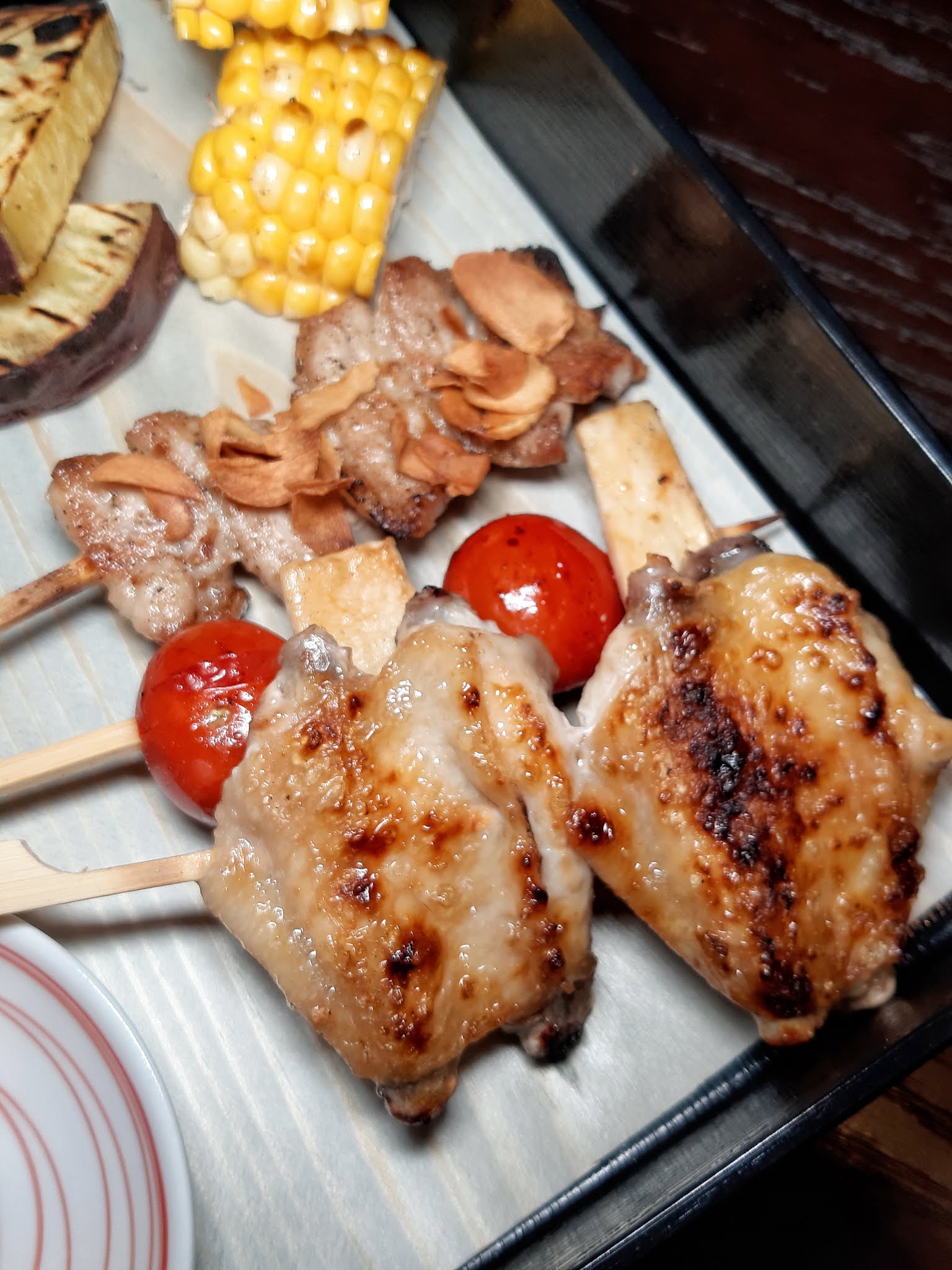 以備長炭即烤,每款食物都沾上了炭火的香氣,的確好少地方食到,就算有,都未必咁嘅價錢,燒雞翼火喉掌控平均,放近嘴邊已傳來陣陣焦香,割開兩半令火力均勻,食落不會過於乾身,雞皮滲出油香更是邪惡。