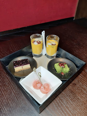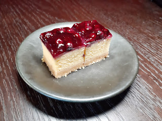 壓軸的是日精選蛋糕,今次是藍莓芝士蛋糕,質感紮實,芝士味不會過於濃烈,與藍莓的鮮甜好合襯,而且每人一小件,份量恰好。