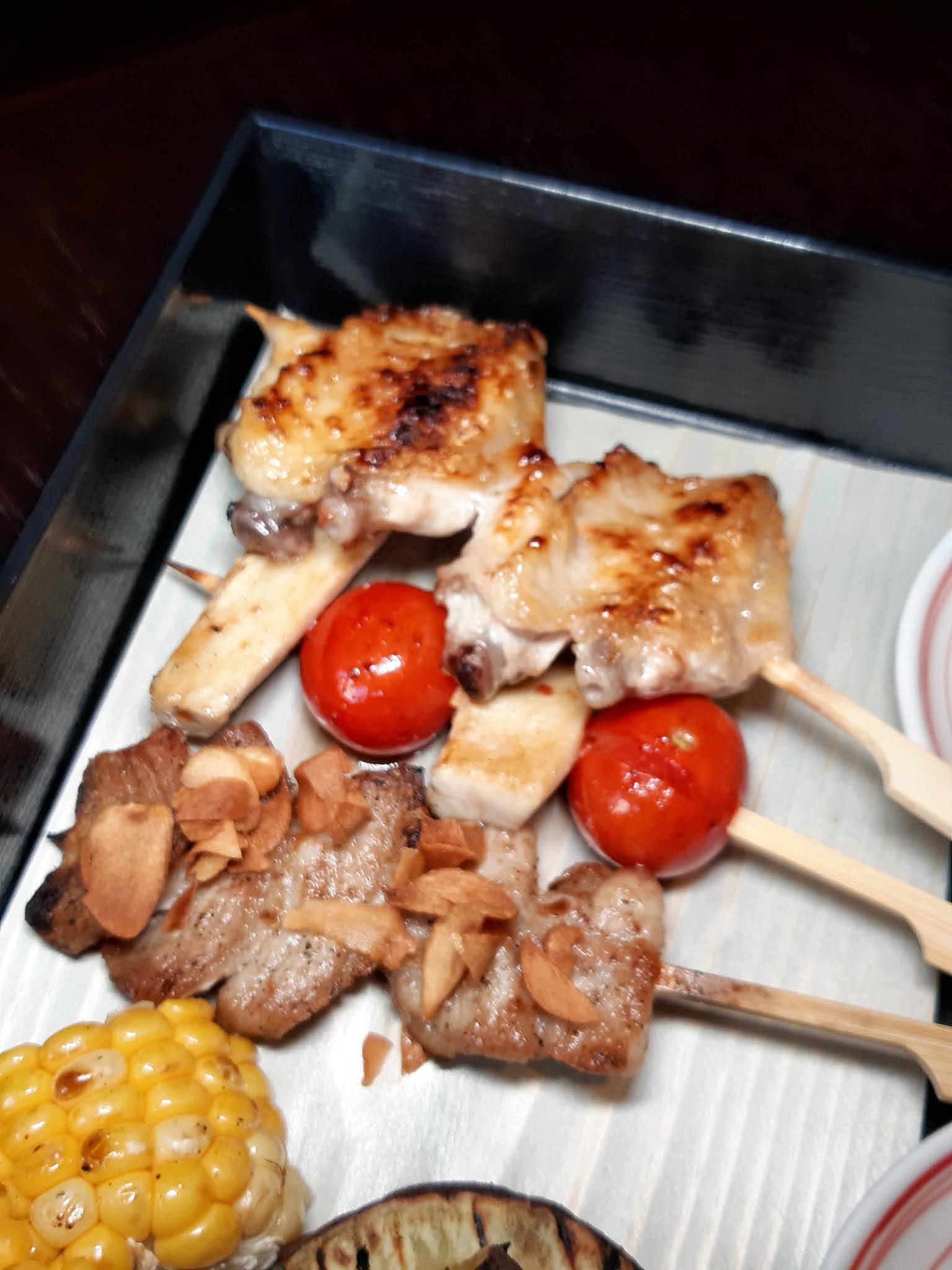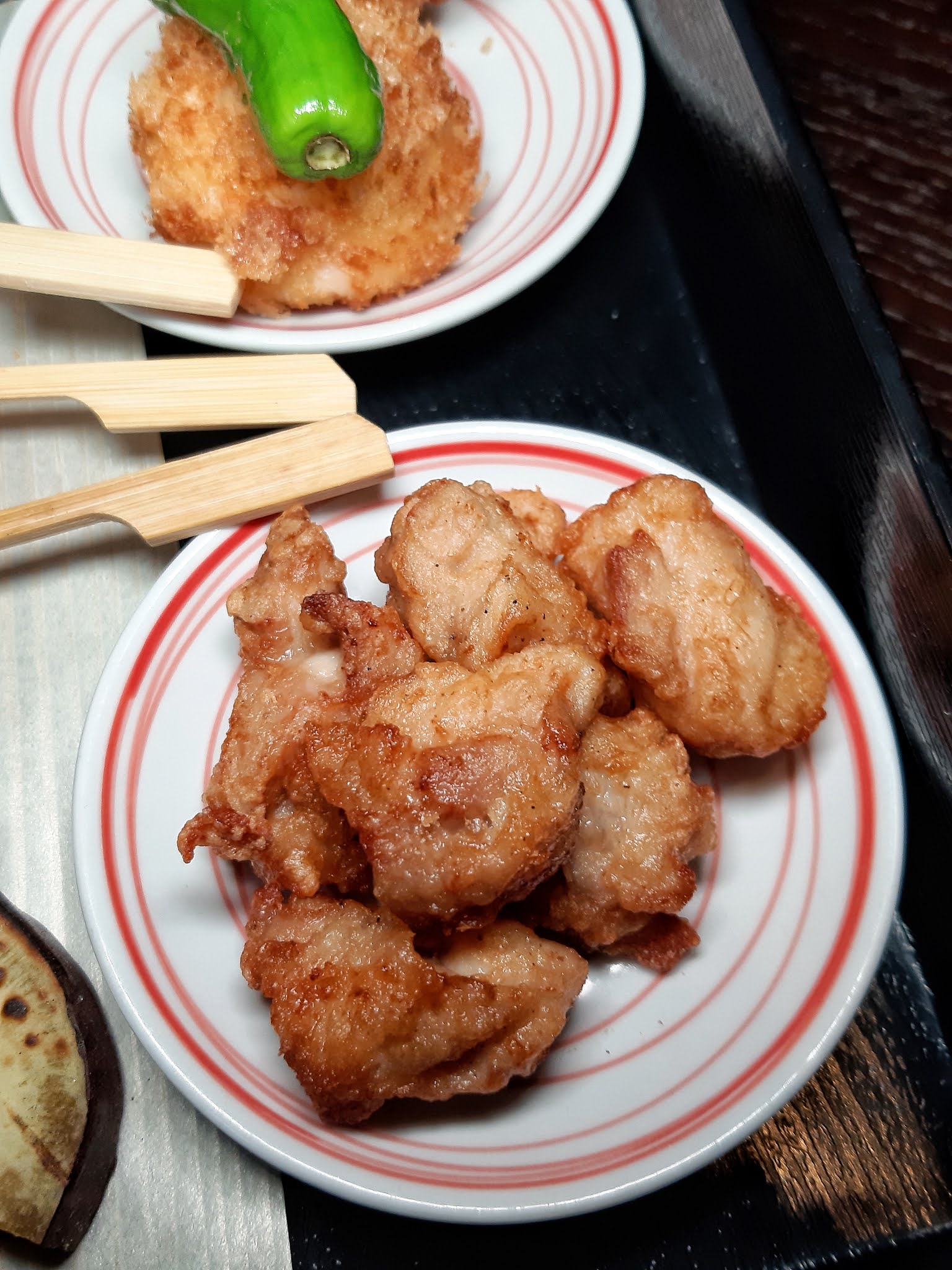 特意同侍應講低炸鮮蟹肉餅同唐揚雞柳跟串燒上。
