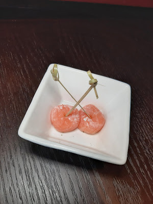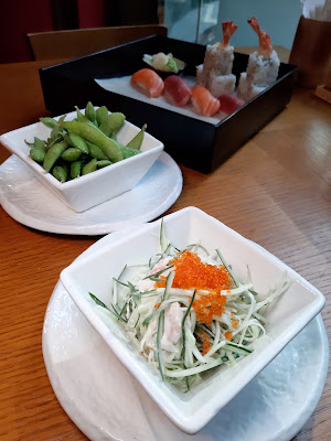 餐前先送上日式小食,枝豆用鹽漬過,帶少少咸香,兩個人慢慢食消磨時間一流,而飛魚子沙律又係即叫即整,絕對不會係晨早整定,可以放到出水貨色,而且食得出食材新鮮,口感清新怡人。