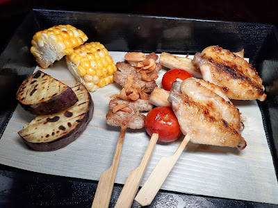 由於下午茶有即烤串燒,建議大家同侍應交帶一聲,不妨食完小食同壽司,之後先再食熱辣辣既蟹餅、雞柳同串燒就最啱 timing,而且餐飲竟然有白鶴純米酒提供,用串燒佐酒真係無得輸。