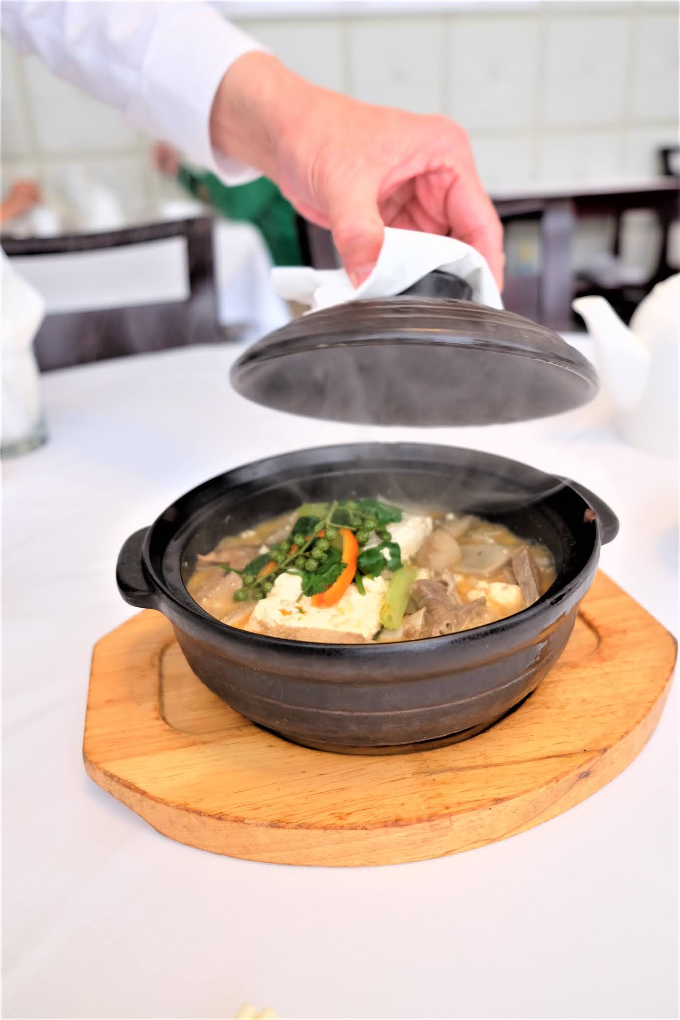 羊雜份量啱啱好,炆得夠稔及入味;豆腐應該是自家出品,內裡釀有肉碎及荸薺粒,增添了口感,豆腐質地比較粗糙,反而可以沾滿了羊雜的羶香,但不會過份,辣辣地加上京蔥的香氣,構成一個獨一無二的美味圖畫,雖然第一次食,但印象難忘。