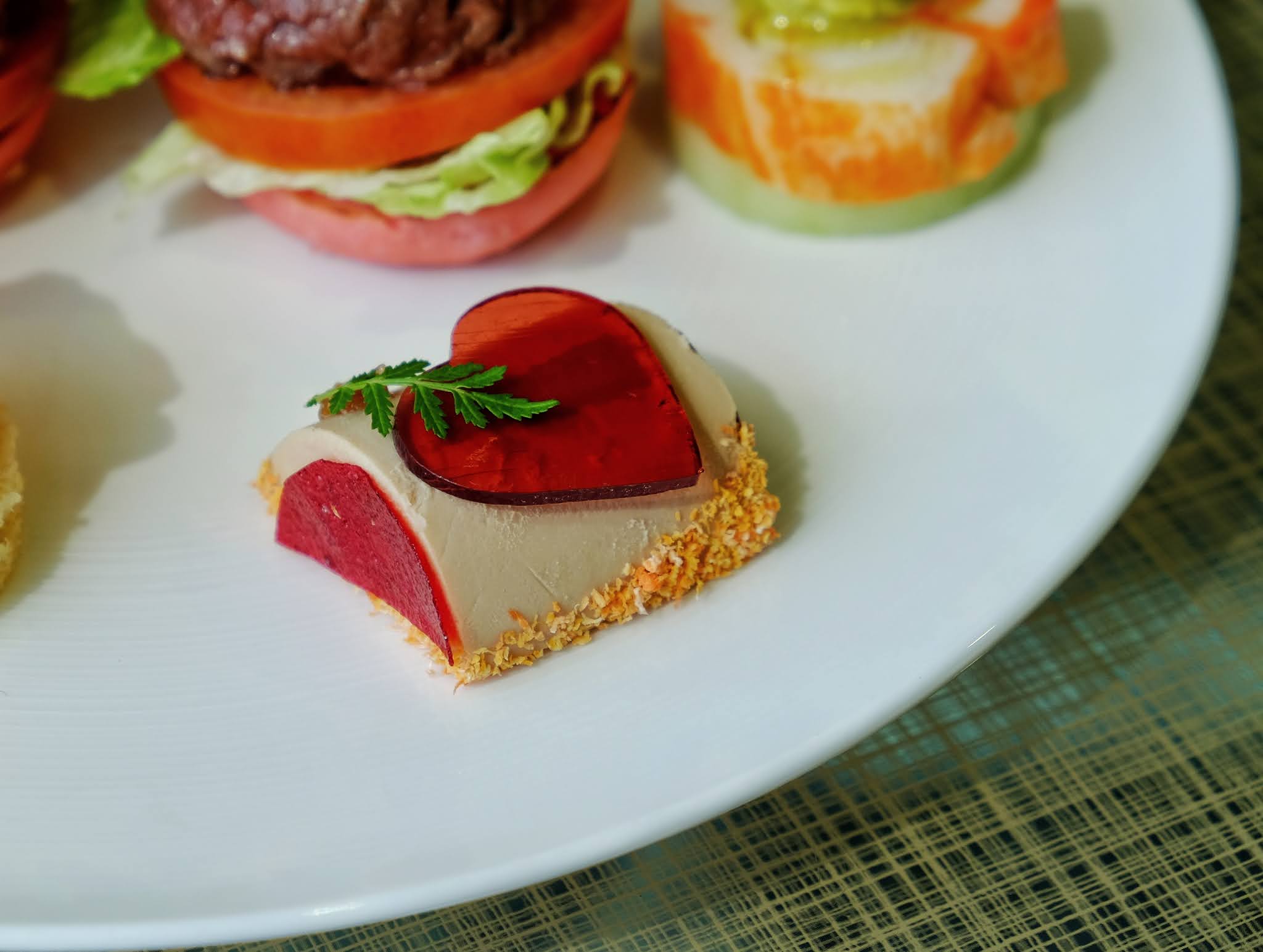 既然以情人節作主題,心心當然少不了,豔麗鮮紅的心形士多啤梨慕絲香甜幼滑,必定令另一半甜到入心。