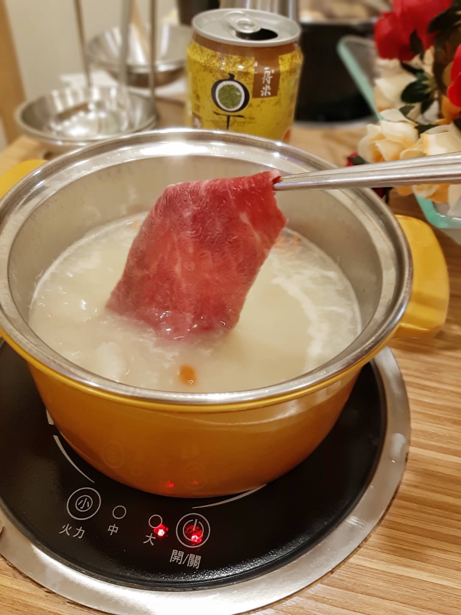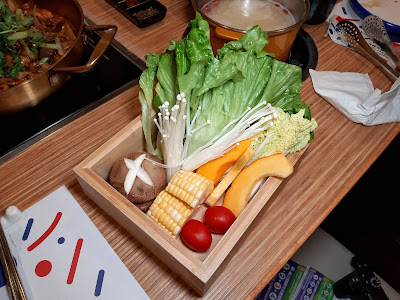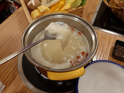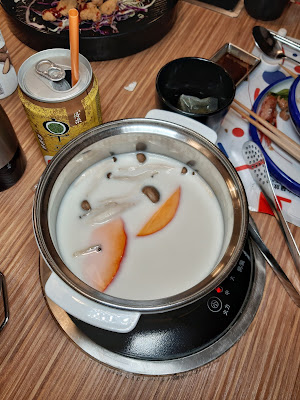 由於是「一人一鍋」,有「美顏花膠鍋」、「韓式泡菜鍋」、「北海道牛乳鍋」、「日式海帶豆腐鍋」及「麻麻辣辣鍋」五款,自己就點了花膠鍋,飲了幾口湯,都幾鮮甜,而且有幾件花膠筒,至於其他女士就多數要牛乳鍋,聽講都不錯。