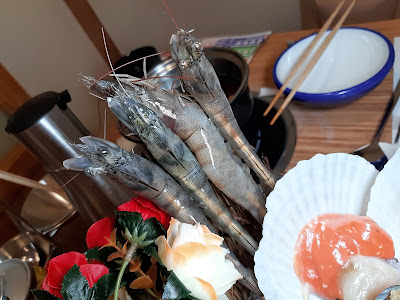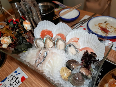 當中包括海蝦、扇貝、鮑魚、龍躉片與及沙白,不過之後有大量牛肉,好啱自己,所以要留胃納,海鮮試過就算。