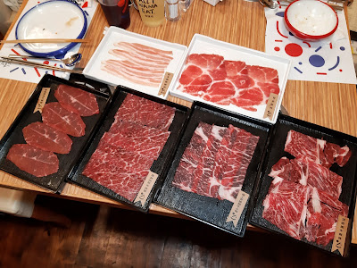 第一round就先上齊六款肉類,每款雖然只得一片,但是之後可以free flow,想食幾多都得,個人始終喜歡牛肩脊的嚼口與及肉香。