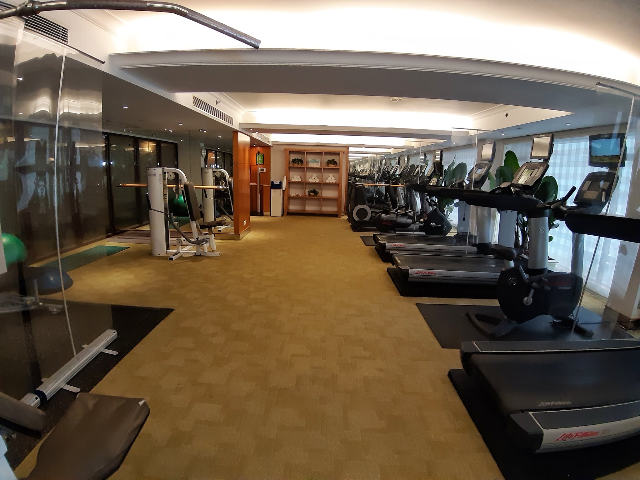 健身室都幾大,有成十部機,每兩部機有透明膠片隔開,做足防疫措施。