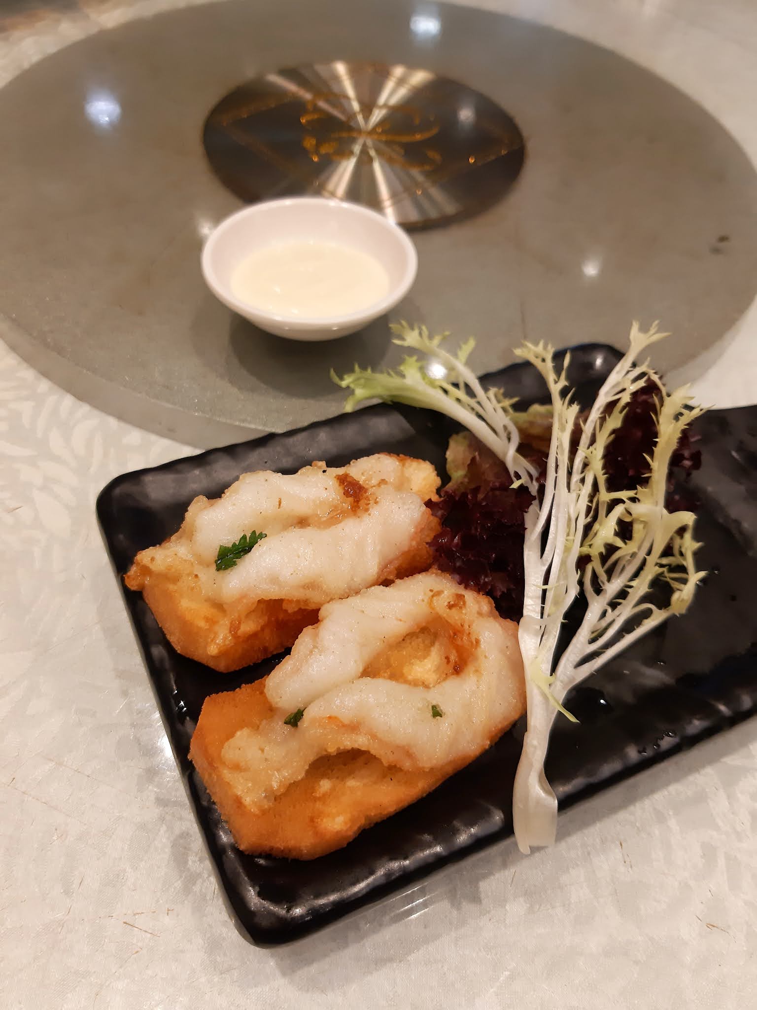 揉合了中西特色的蝦多士,麵包炸得鬆化可口,但略微過了火,蝦肉是預期的爽彈。