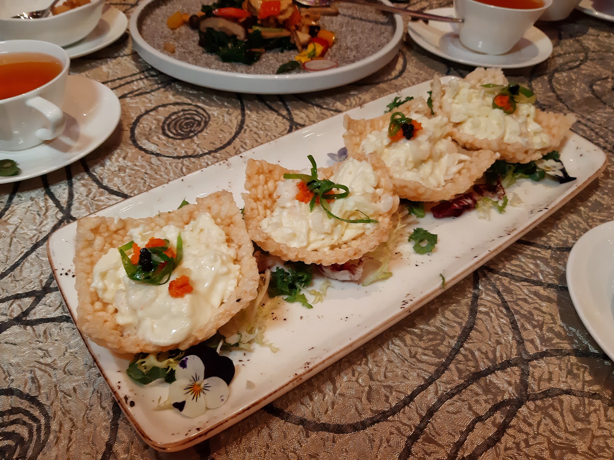 煙燻鯧魚、蟹茶碗蒸、爆玉米花