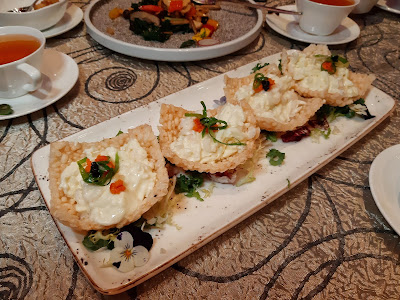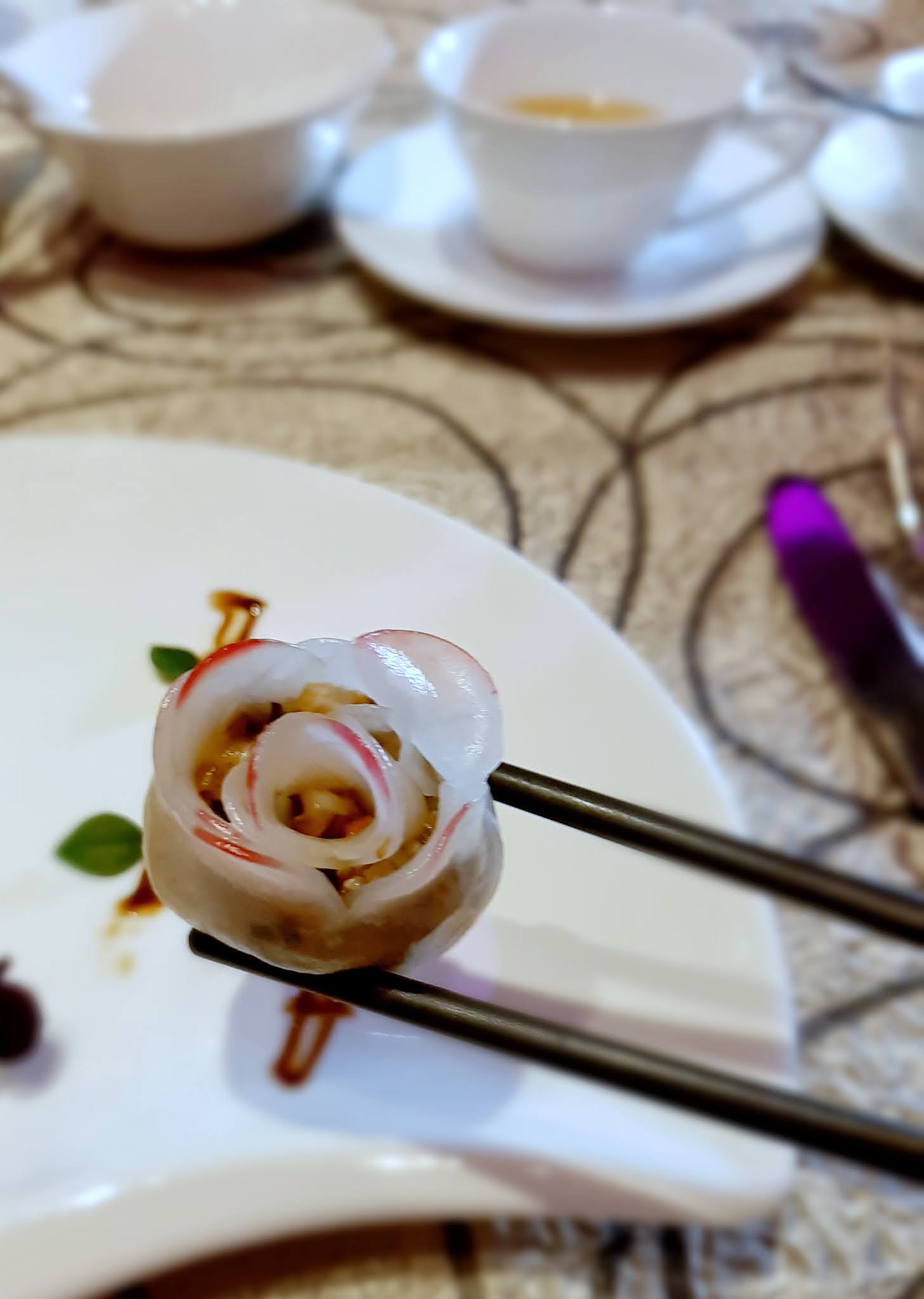 白玫瑰是以澄麵粉搓揉而成,柔韌可口,又是一道手功點心,內裡是百合與野菌,味道清新芳香。