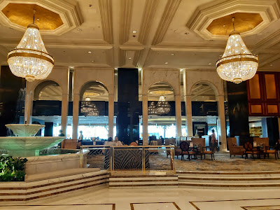 大堂高懸的水晶吊燈,別具氣派,座位闊落而空間感強烈,而所用的瓷器,更是典雅瑰麗。