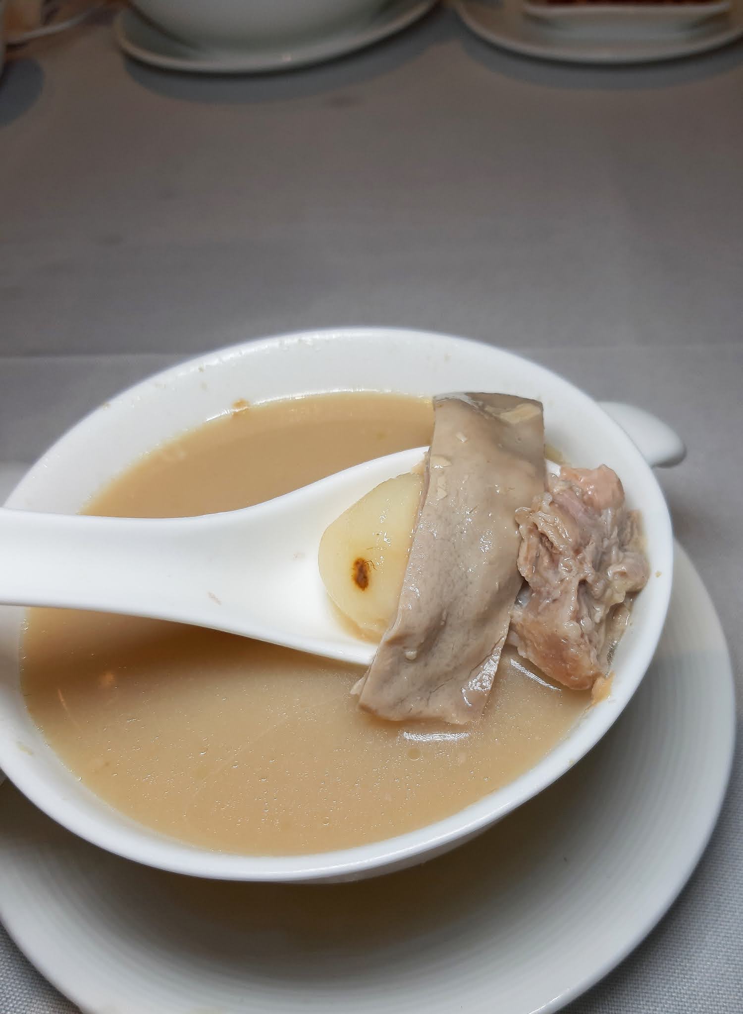 套餐是指定動作,兩人份份量絕對足夠,個人幾鍾意當晚的「白果腐竹豬肚湯」,夠火喉,湯色呈乳白色,入口醇香,超正。