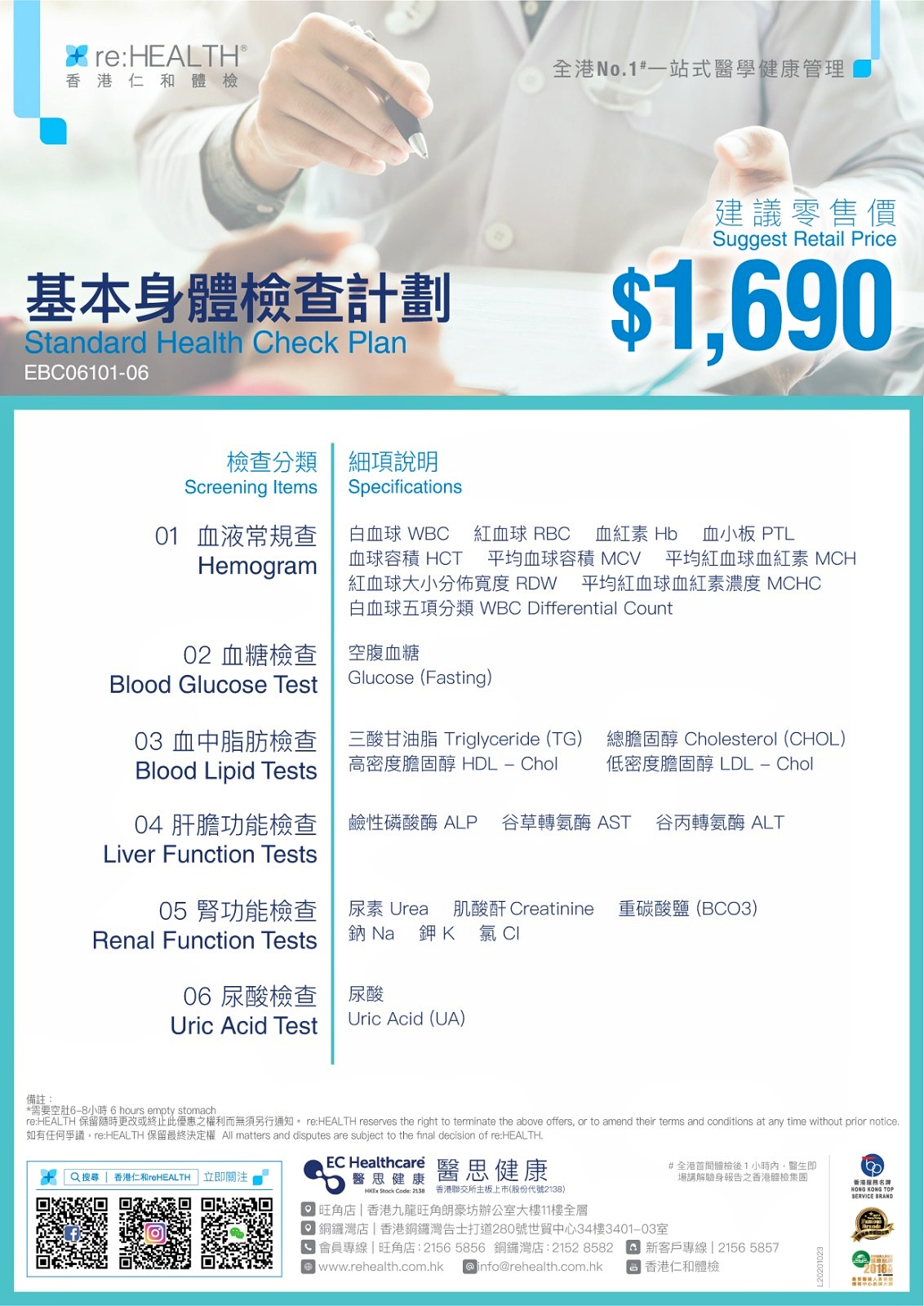 另外,想進一步了解自己身體狀況,亦可在預約時加多$400,便會有抽血檢驗,內容包含了肝、腎、血糖等等常見的問題,而驗血結果一欄,更有注射疫苗評估,及早知道都係一件好事。