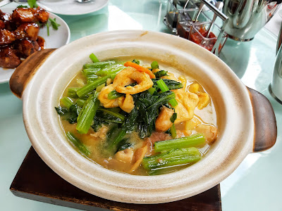 以前多數是食春菜排骨,換上了豆醬雞球就比較少見,蝦乾用上了粗身貨色,比較有嚼口,春菜炆得超腍身,有點入口即化的感覺,而雞球則保留嫩滑的肉質,而所有的味道,通通都跑到湯裡去,單單喝一口湯汁會覺得偏咸,但用來泡飯是啱啱好。