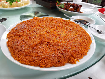 把潮州伊麵用上湯先行燴過再煎,表面脆口,而內裡軟綿,個人覺得可以再香口一些。