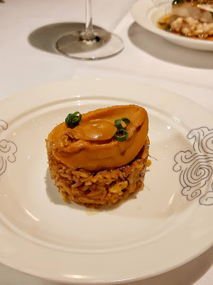 份量啱啱好,飯粒內有蝦仁、火腿及雞粒,相當豐富,就算飯粒加入鮑魚汁,依然覺得乾身,放上扣好的六頭鮑魚,就更顯矜貴。
